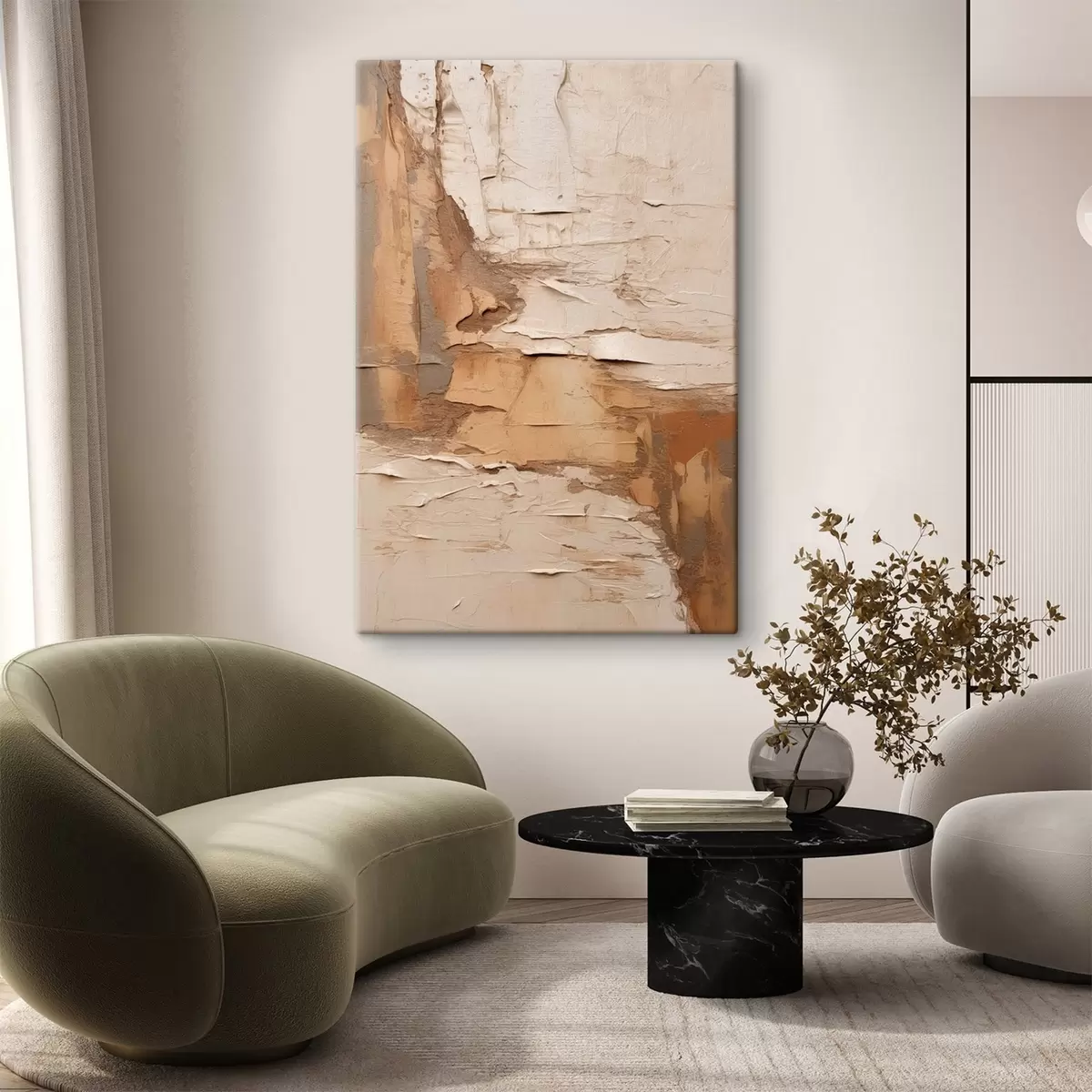 Paveikslas Abstraktus paveikslas su storais potėpiais, smėlio ir rudos spalvos tonais, tekstūruotu paviršiumi, neutralių spalvų palete Nr s46273