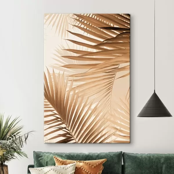 Paveikslas Abstrakčios palmių lapai rudos spalvos tonais, tropiniai, botaniniai, gamtos, minimalistiniai, elegantiški, modernus dizainas Nr s46275