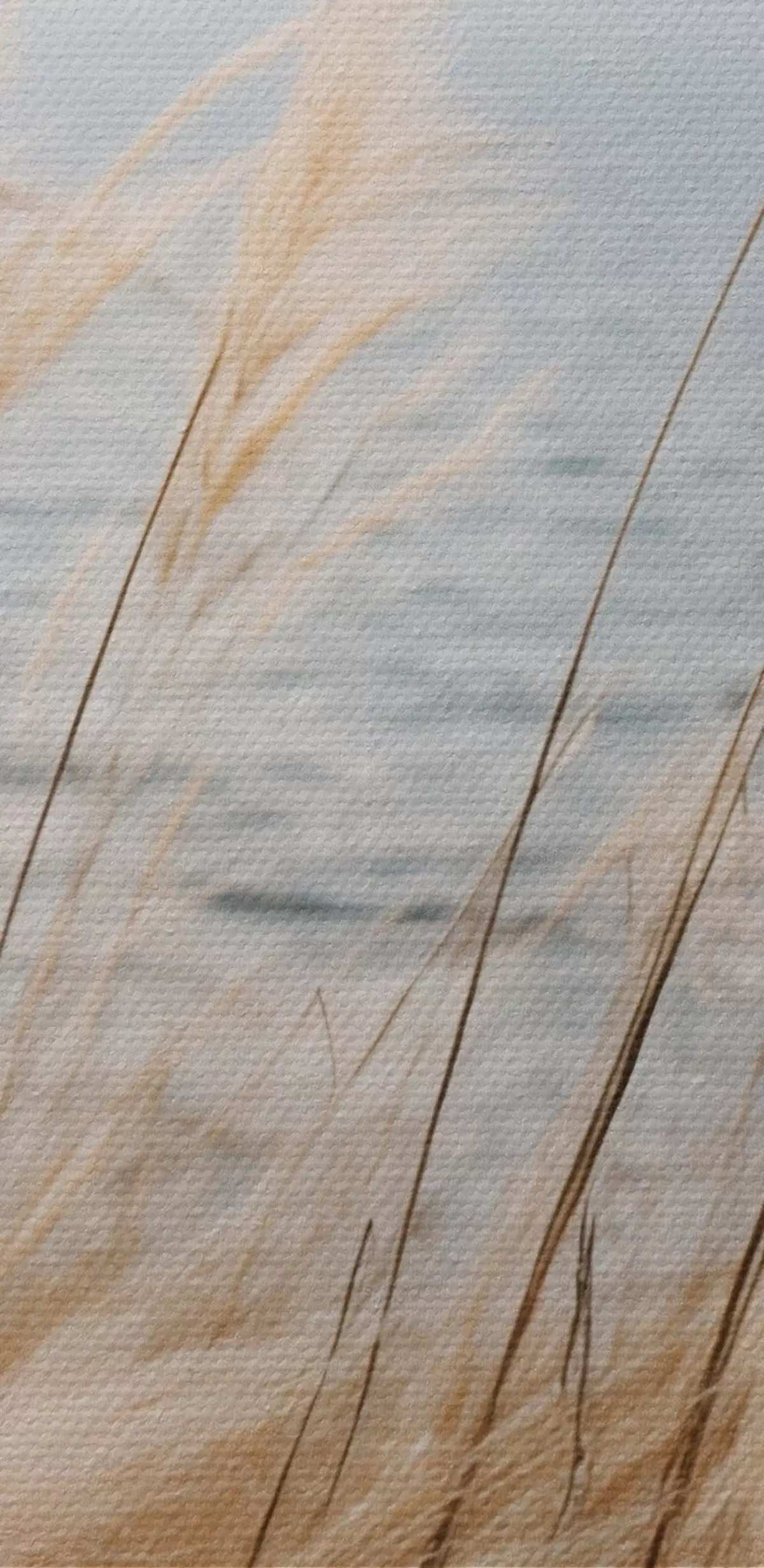 Paveikslas Pampų žolė su ežeru ir kalnais fone, švelnus apšvietimas, prislopintos spalvos, natūralistinis stilius Nr s46283