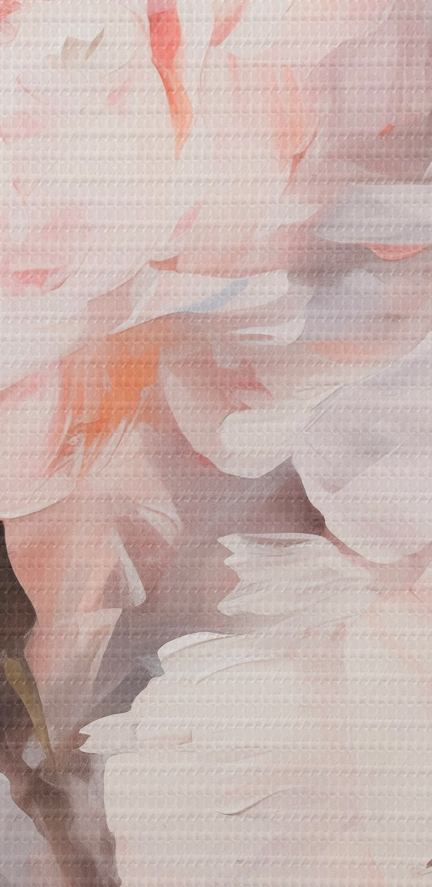 Paveikslas Šviesiai rožinių bijūnų puokštė su žaliais lapais, švelniais potėpiais, pastelinėmis spalvomis, šviesiu fonu Nr s46294