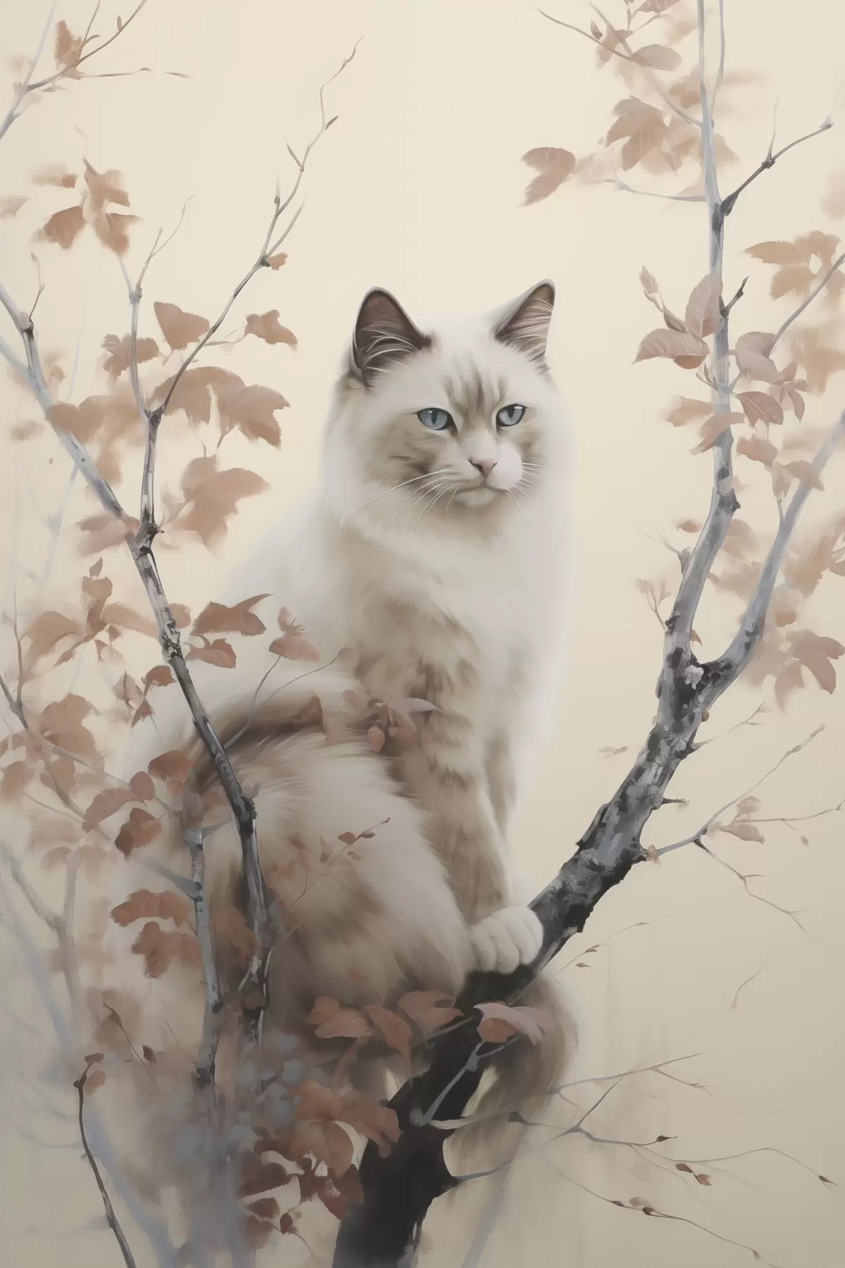 Paveikslas Katė sėdi ant medžio Nr s46301