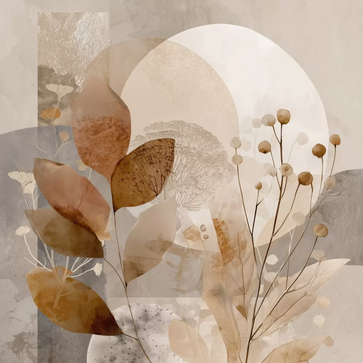 Paveikslas Gėlių raštas smėlio ir rudos spalvos Nr s46308