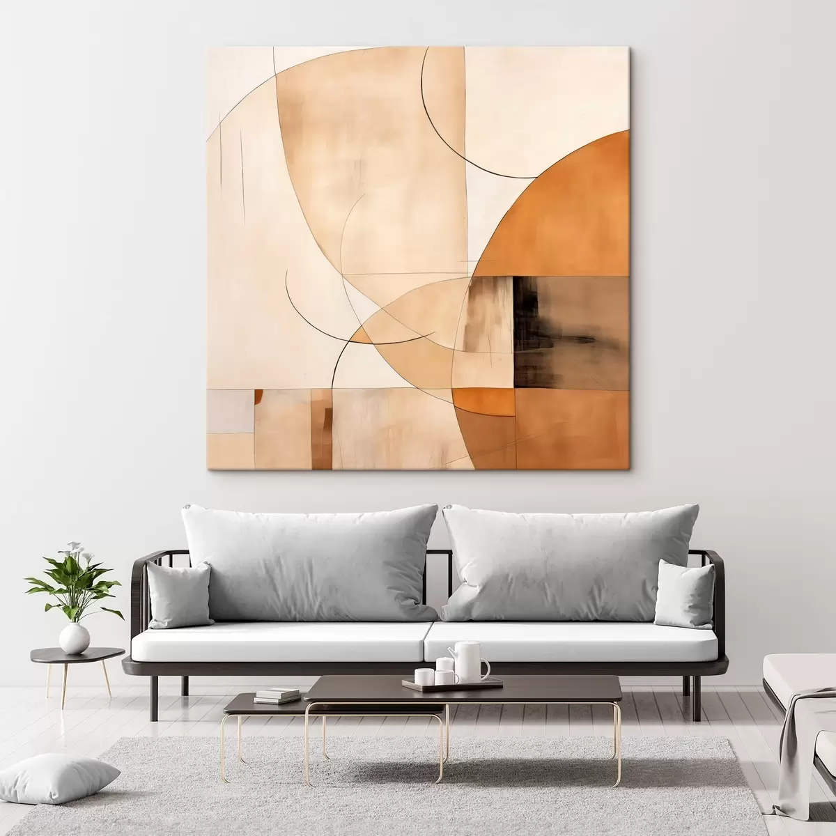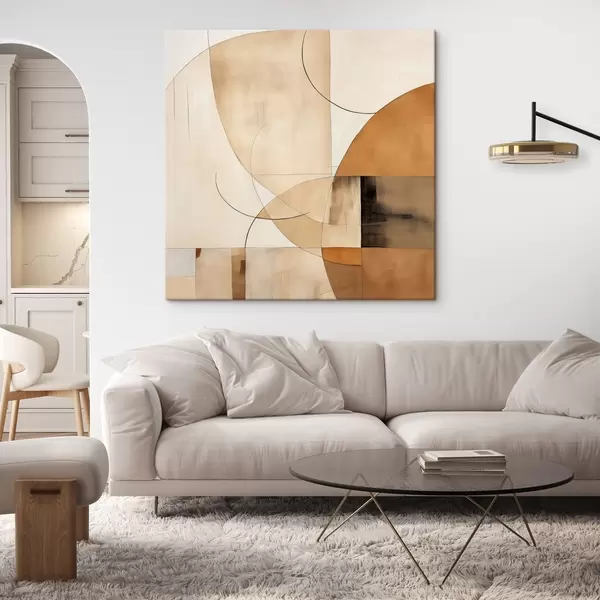 Paveikslas Geometrinė abstrakcija su išlenktomis linijomis ir smėlio atspalviais Nr s46320
