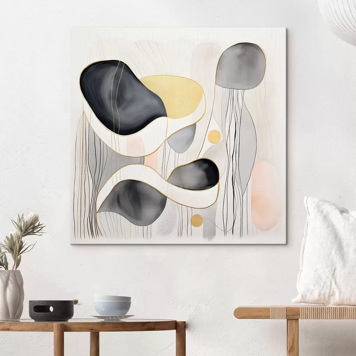 Paveikslas Neutrali kompozicija, pilkos ir smėlio spalvos dėmės moderniu stiliumi Nr s46334