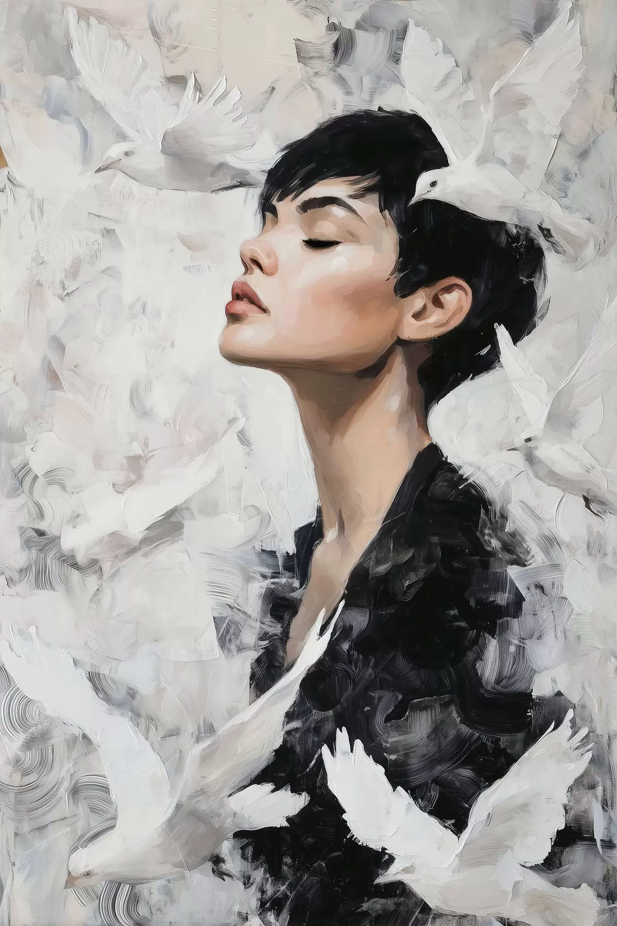 Paveikslas Mergaitė ir paukščiai Nr s46365