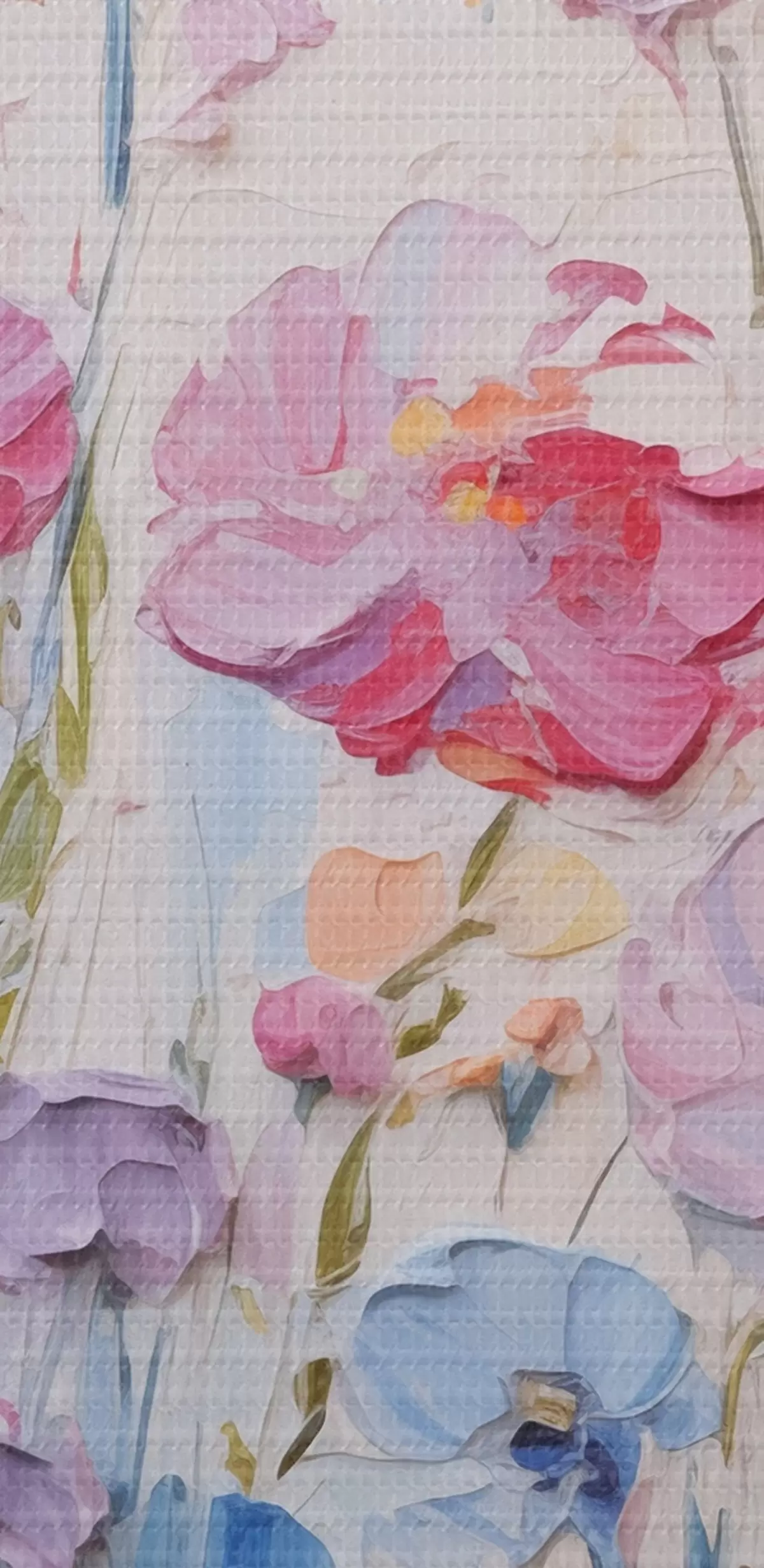 Galima užsakyti trijų rūšių medžiagą: "Economic Canvas" - tanki ir patvari medžiaga skaitmeninei spaudai, identiška dailininko drobės medžiagai, vandeniui atsparus paviršius, tikroviškas detalių atkūrimas, vidutinio grūdėtumo medžiaga. Premium Canvas - tekstūra primena dailininko drobę (susipynę smulkūs siūlai). Minkštas, detalus vaizdo atkūrimas ant matinio paviršiaus. Eco-Premium - aukštos kokybės 100 % medvilninis audinys. Dėl natūralių medvilnės pluoštų medžiaga yra patvari ir atspari nusidėvėjimui. Puikus spalvų atkūrimas ir detalumas.