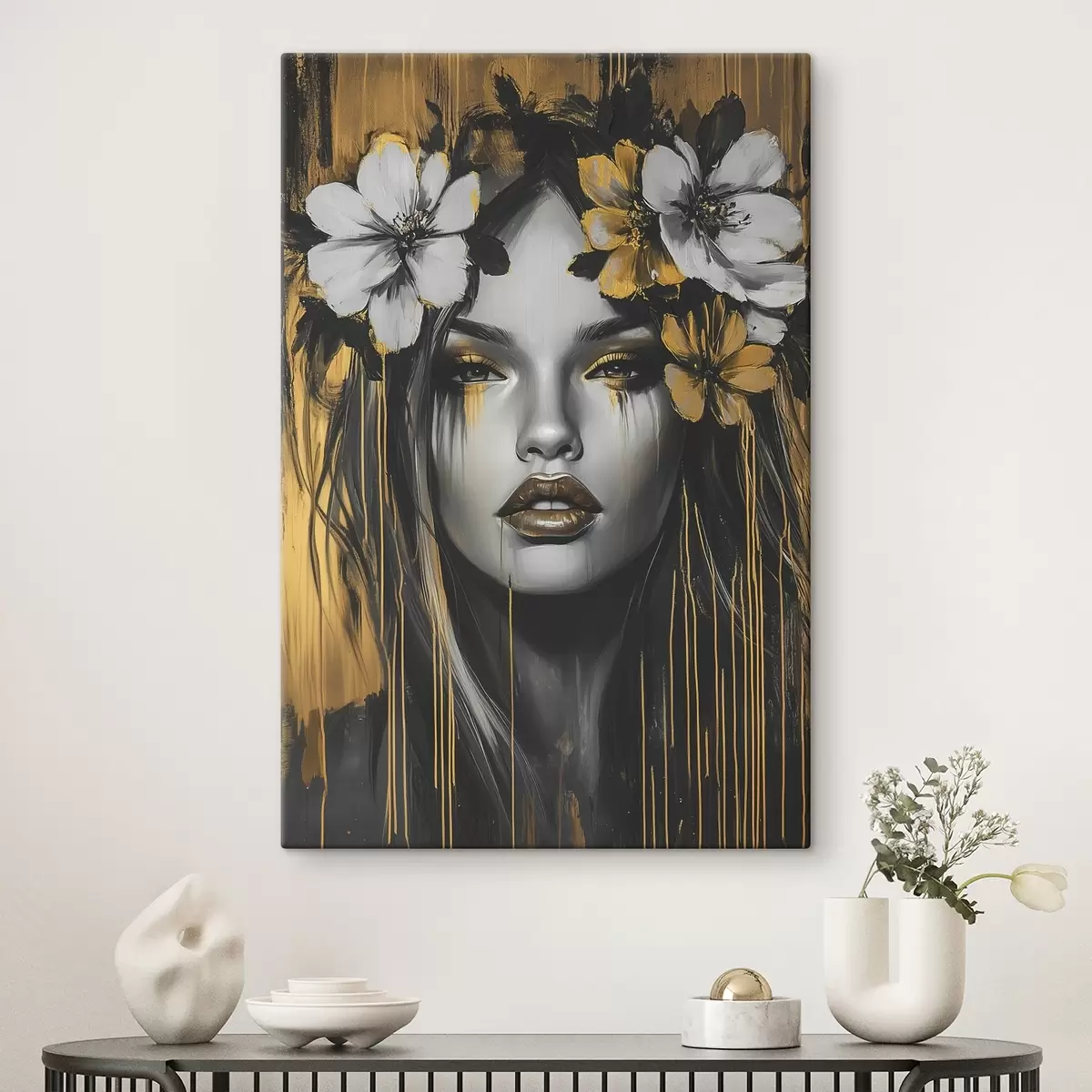 Paveikslas Abstraktus moters portretas su gėlėmis Nr s46454