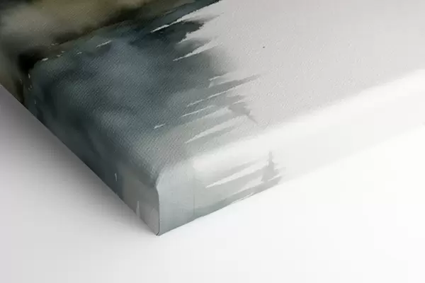 Paveikslas Rūko apgaubtas spygliuočių miškas virš ramios upės, akvarelės stiliumi Nr s46507