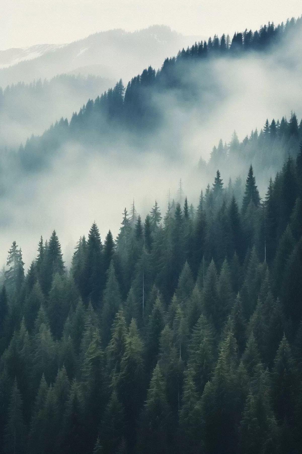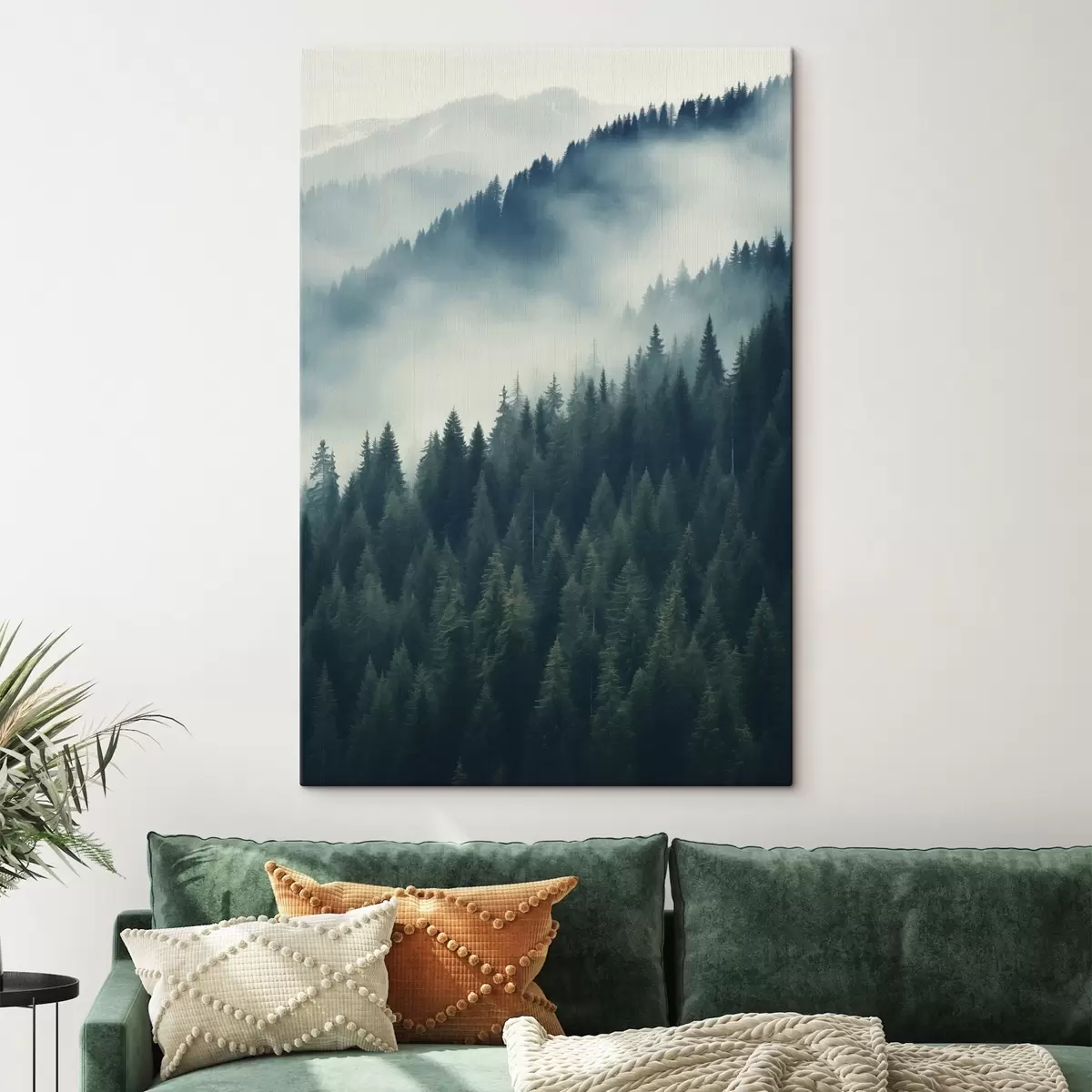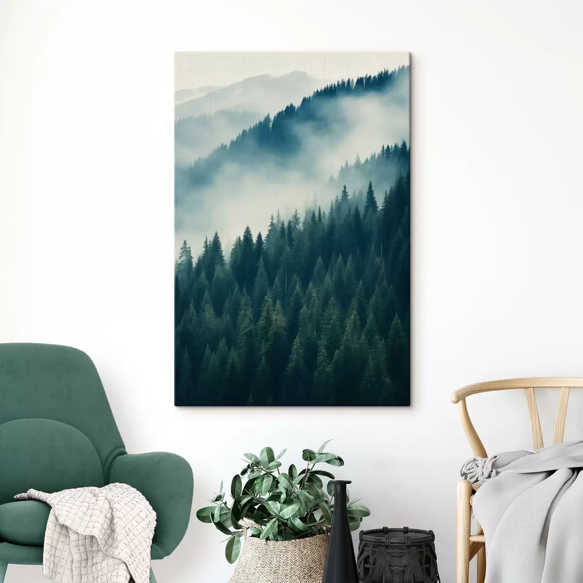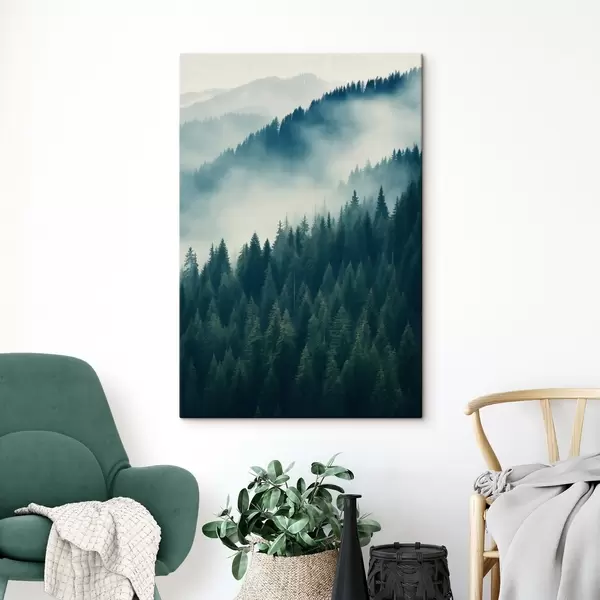 Paveikslas Rūkas virš spygliuočių šlaitų, sodrios žalios spalvos Nr s46516