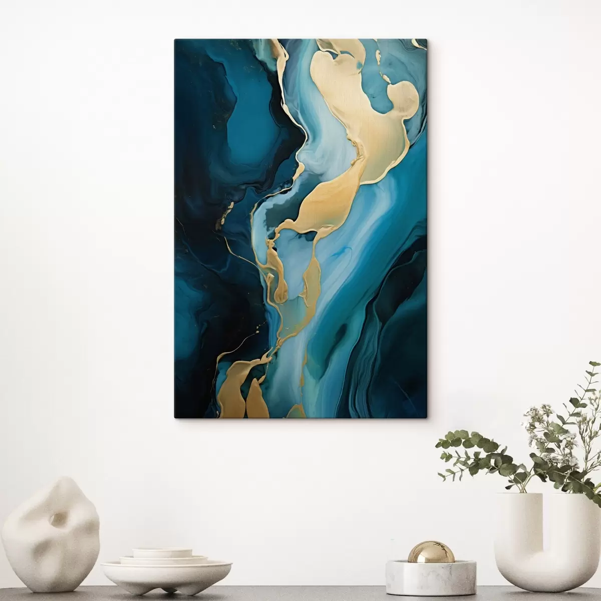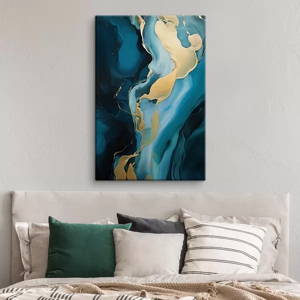 Paveikslas Žalsvai mėlynas abstraktus su ochros srautu Nr s46530