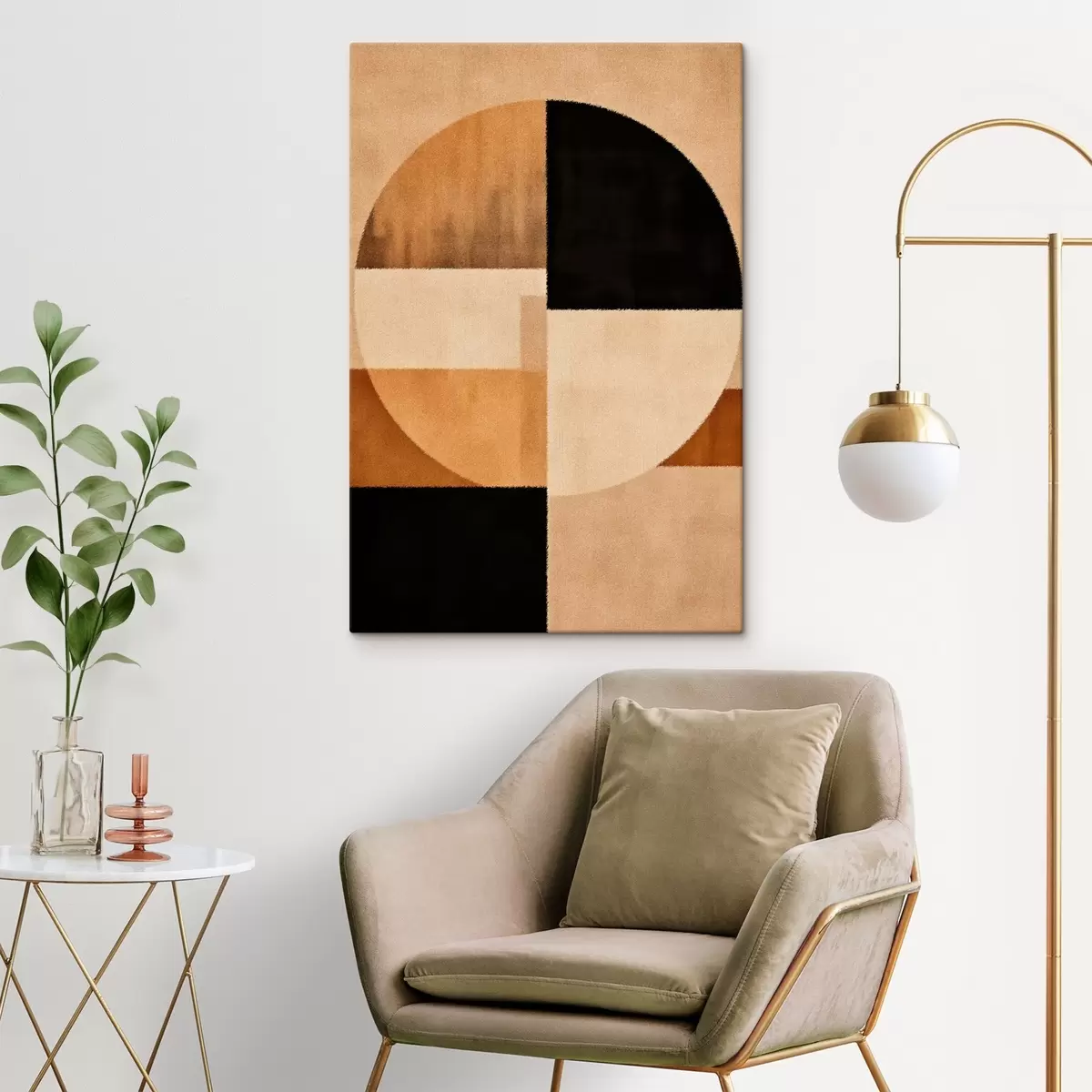 Paveikslas Pusapvaliai ir kvadratai šiltų atspalvių, minkšta tekstūra Nr s46531