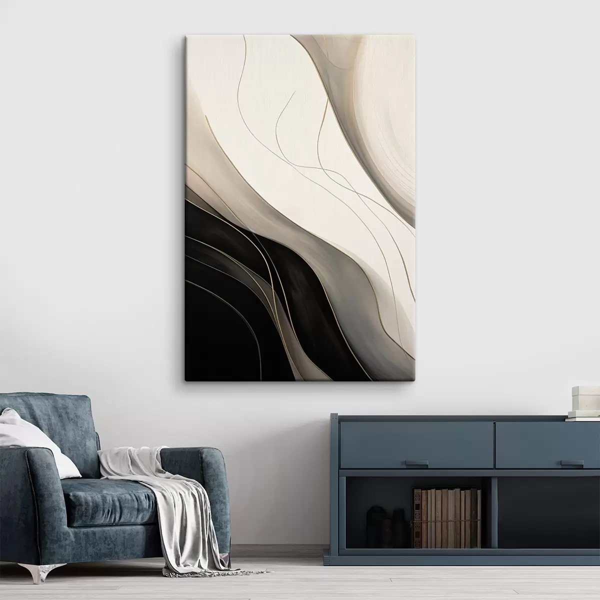 Paveikslas Juodos ir smėlio spalvos bangos su plonomis ochros spalvos linijomis Nr s46541