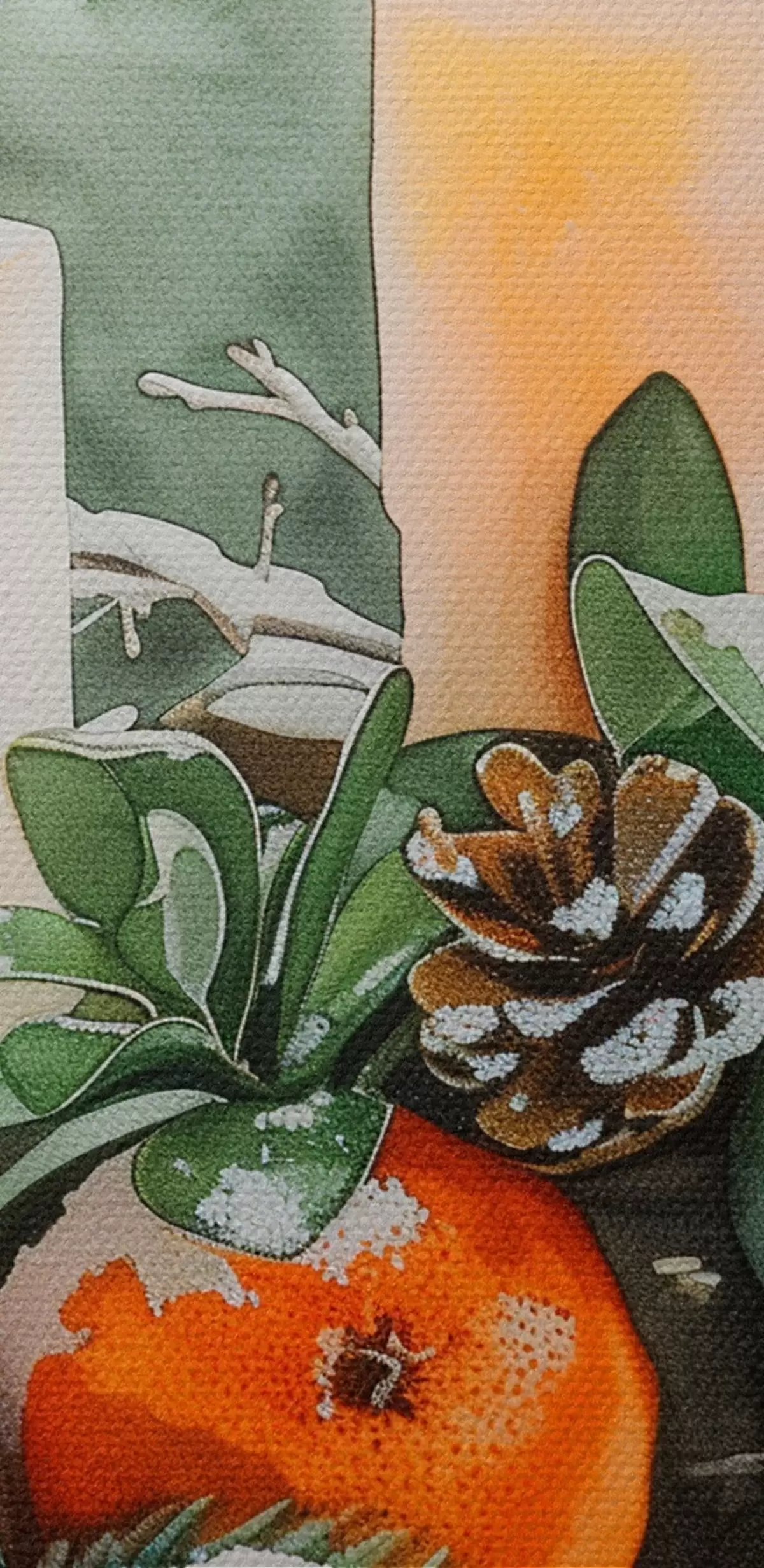 Paveikslas Žvakės, mandarinai ir pušų kankorėžiai Nr s46614