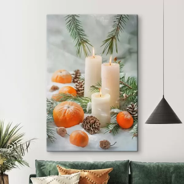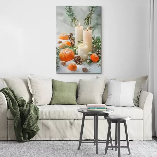 Paveikslas Žvakės, mandarinai ir pušų kankorėžiai Nr s46615