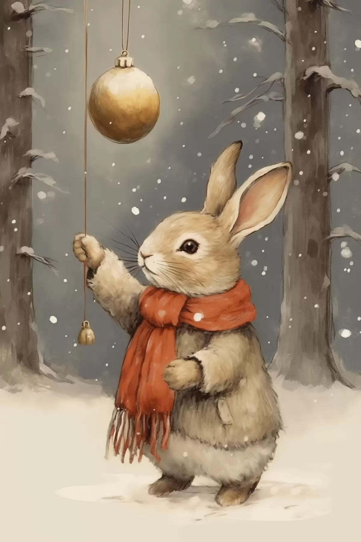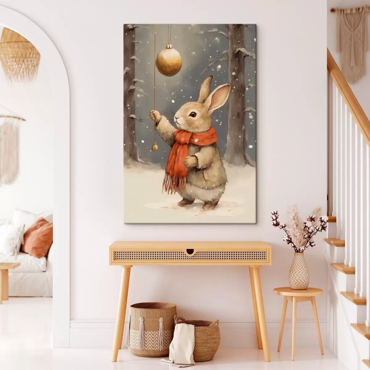 Paveikslas Žieminis kiškis su šaliku ir eglutės žaisliuku Nr s46619