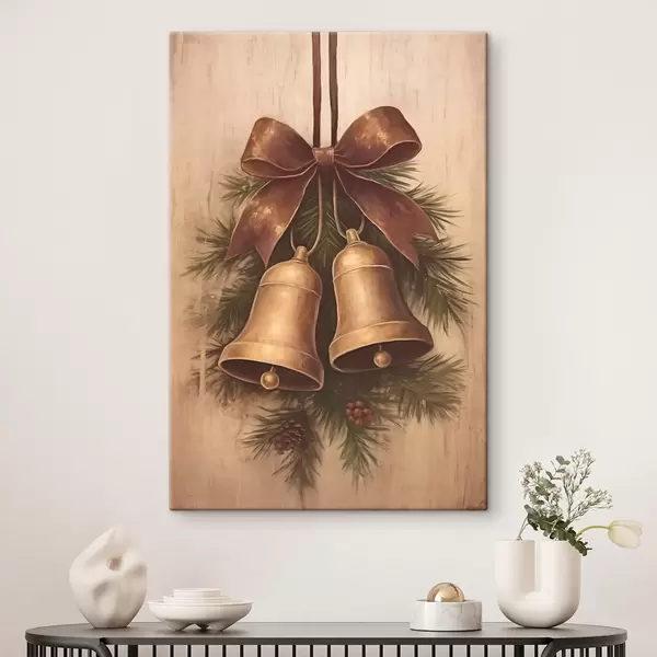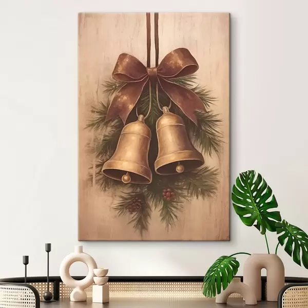 Paveikslas Vintage Kalėdų dekoracija su dviem varpeliais ir kaspinu Nr s46626