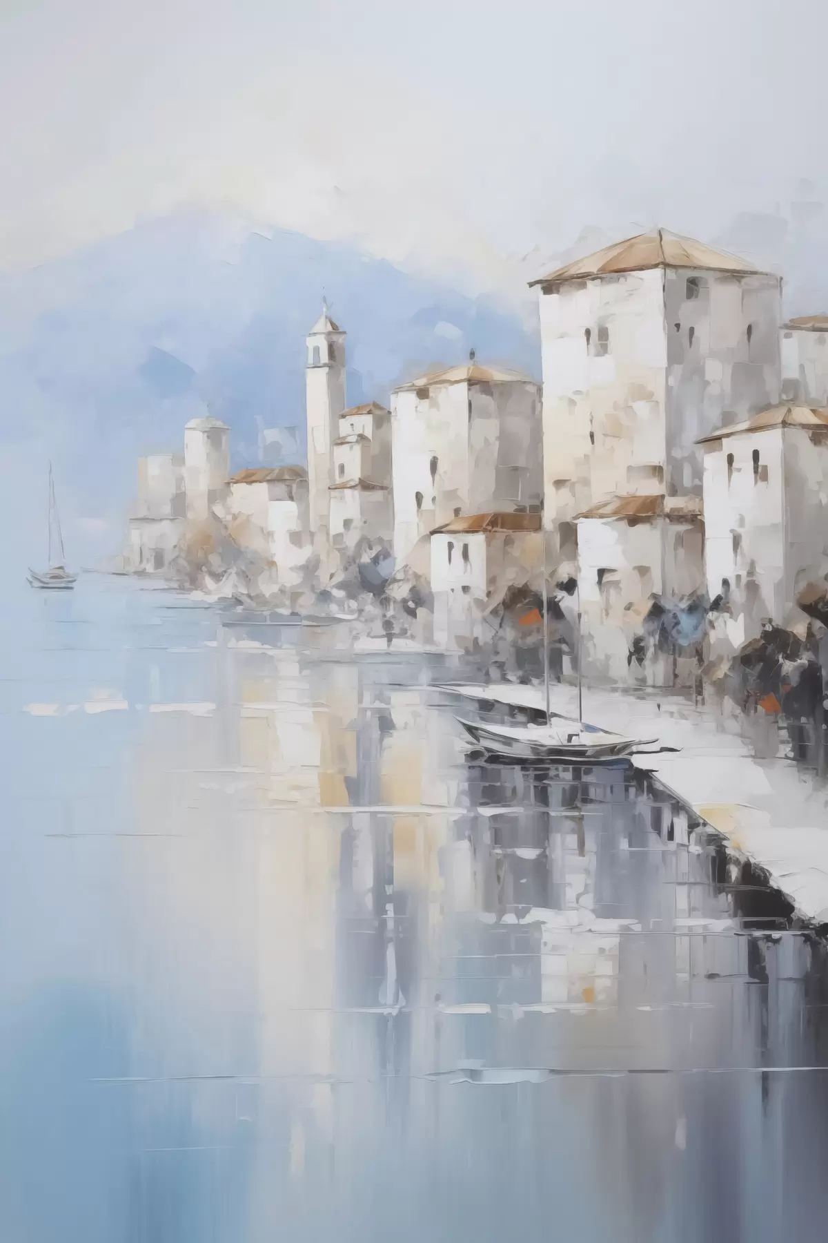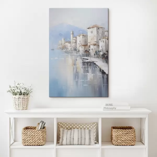 Paveikslas Abstrakčios namai prie įlankos tapybos imitacija Nr s46673