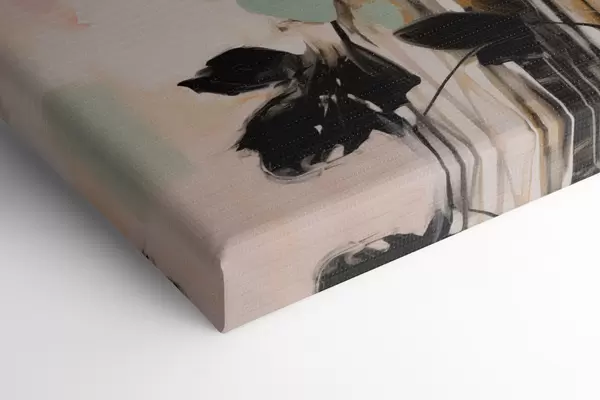 Paveikslas Rožinės ir juodos gėlės su lapais, švelnios pastelinės spalvos, abstraktus gėlių kompozicija, minimalistinis menas Nr s46687