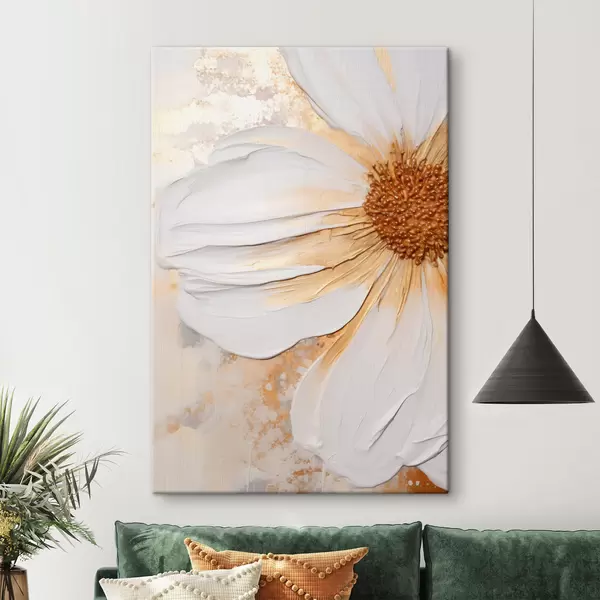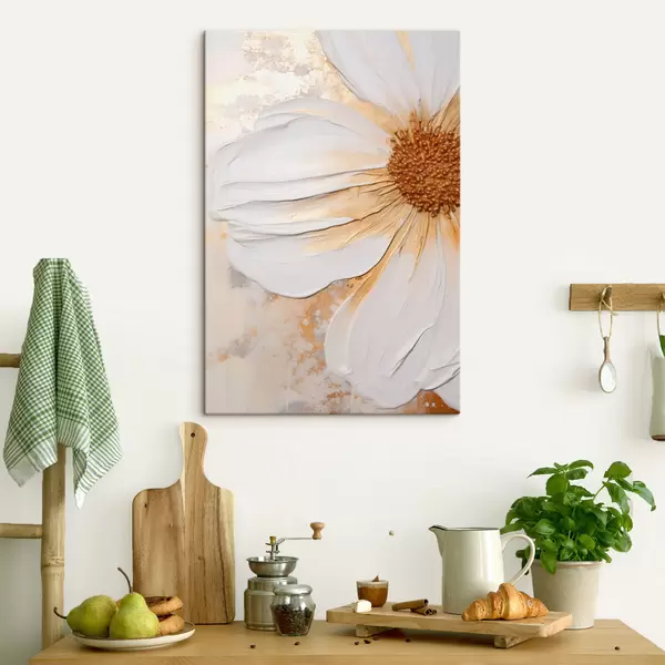 Paveikslas Balta gėlė su subtiliais žiedlapiais, tekstūruotas abstraktus fonas, elegantiškas, dekoratyvinis menas Nr s46692