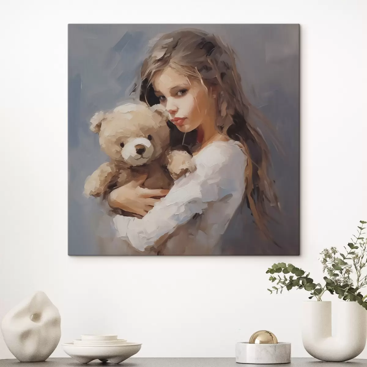 Paveikslas Mergaitė su žaisliniu meškiuku, imitacija Nr s46746
