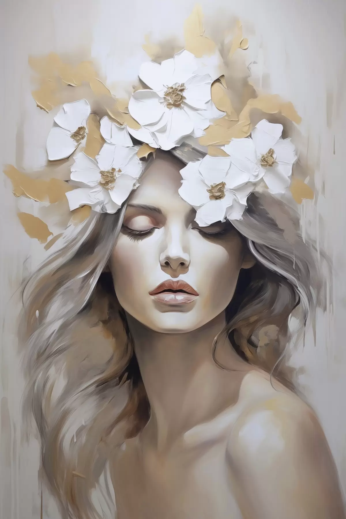 Paveikslas Abstraktus mergaitės su gėlėmis portretas Nr s46757