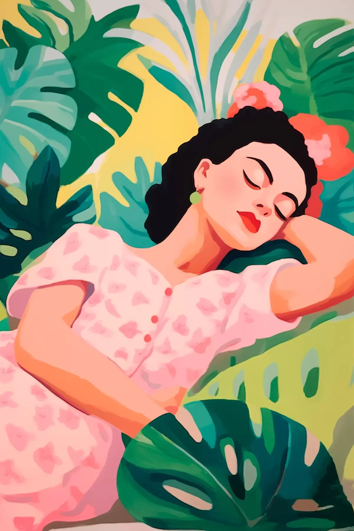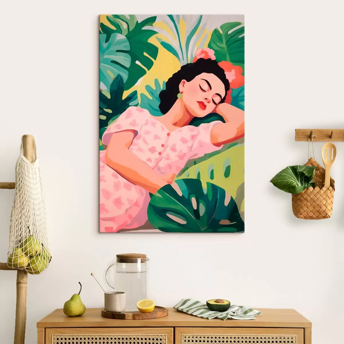 Paveikslas Mergina lapų apsuptyje Nr s46807
