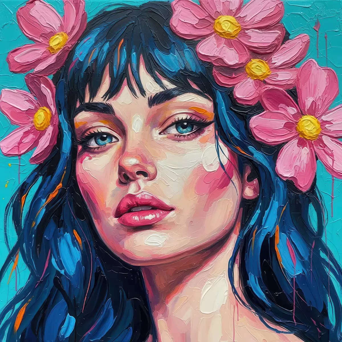 Paveikslas Mergina su gėlėmis plaukuose Nr s46846
