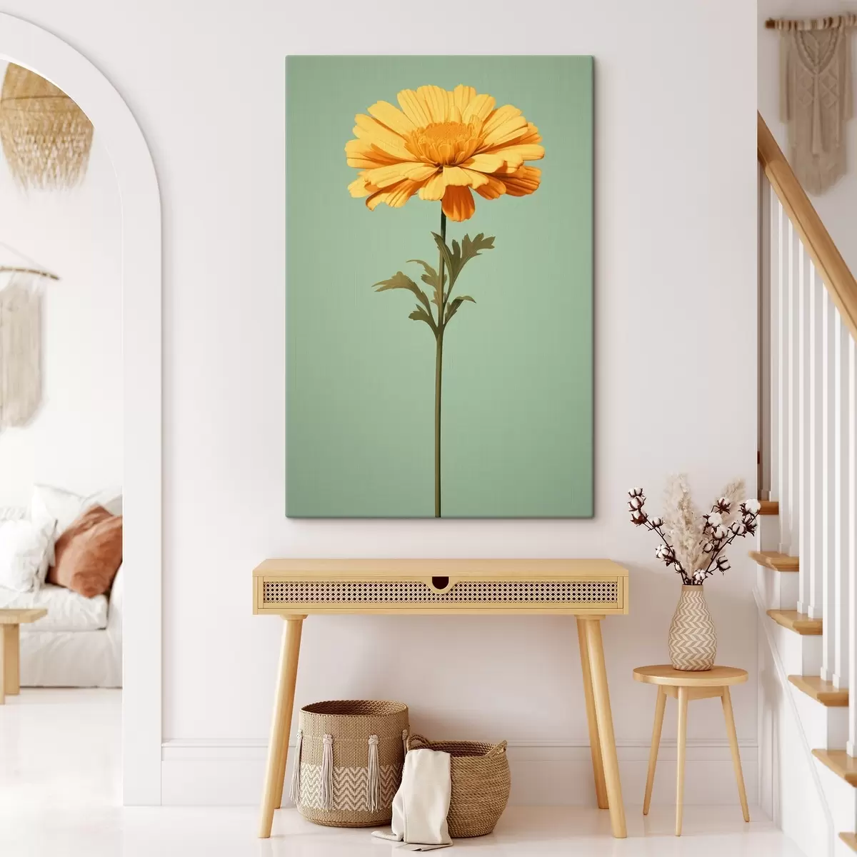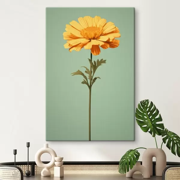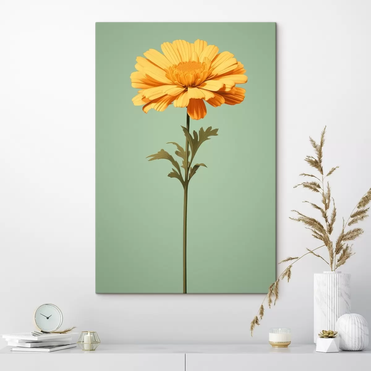 Paveikslas Minimalistinio stiliaus geltona medetka ant mėtų fono Nr s46926