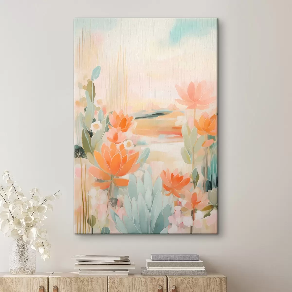 Paveikslas Gėlių peizažas rožinės ir mėlynos spalvų tonais, nutapytas šiuolaikiniu tapybos stiliumi Nr s46931