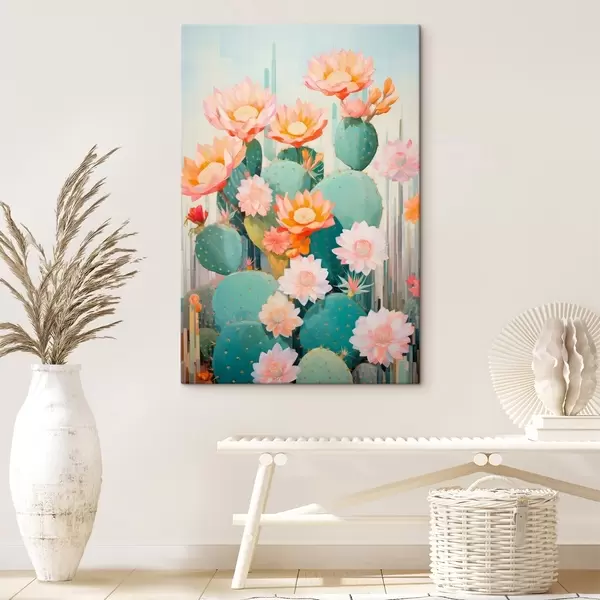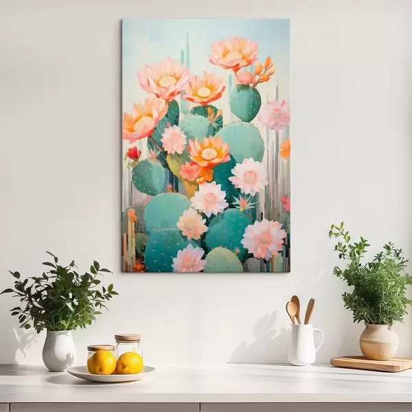 Paveikslas Kaktusų gėlių sodas švelnios pastelinių spalvų paletės iliustracijos stiliumi Nr s46935