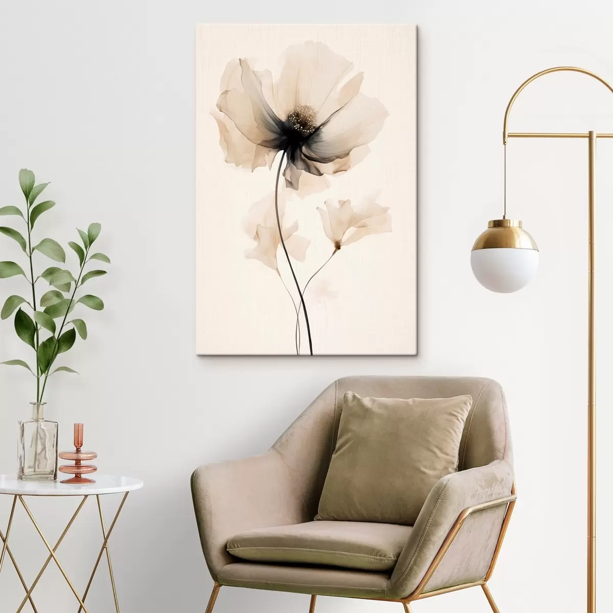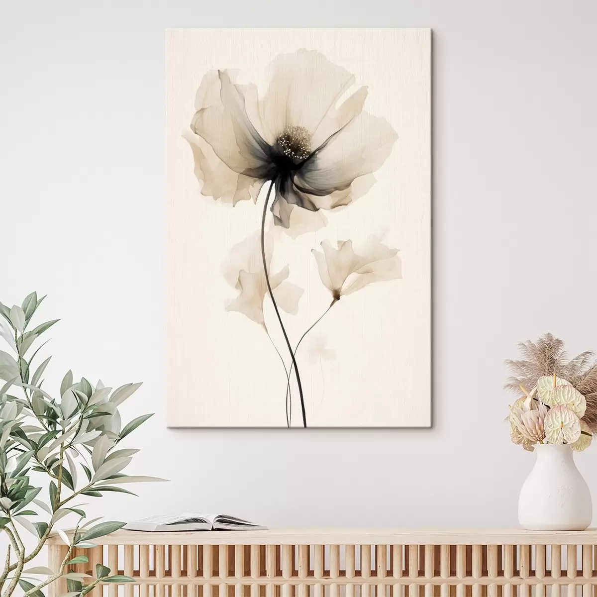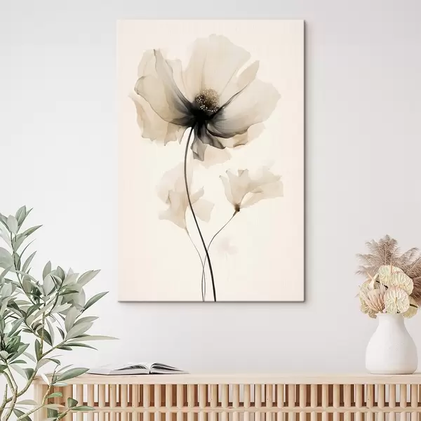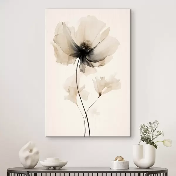 Paveikslas Subtilus pusiau permatomas gėlė su tamsiu centru minimalistiniu stiliumi Nr s46944