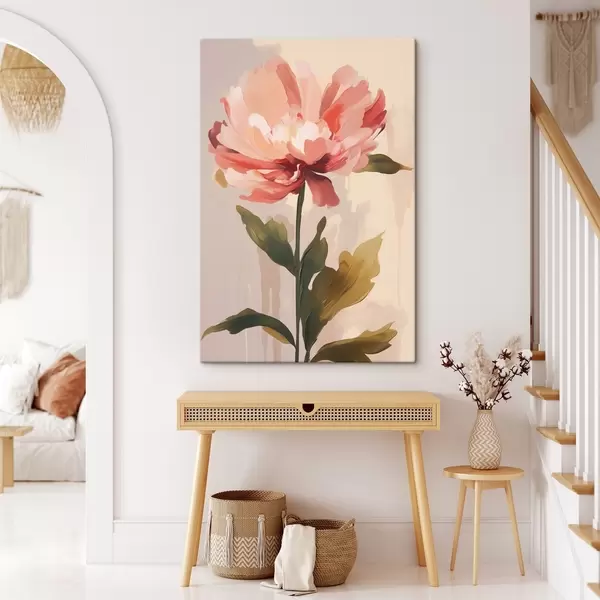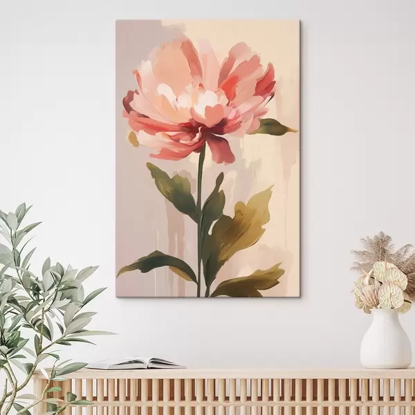 Paveikslas Moderniojo meno iliustracijos stiliaus bijūnas su koralų rožinės spalvos žiedlapiais Nr s46948