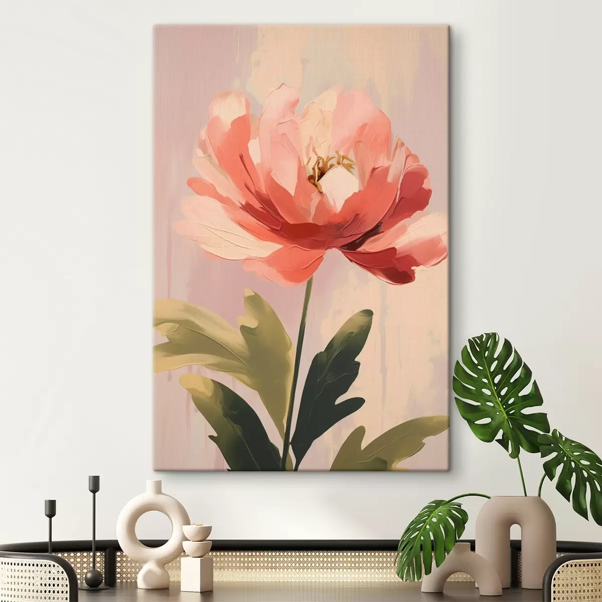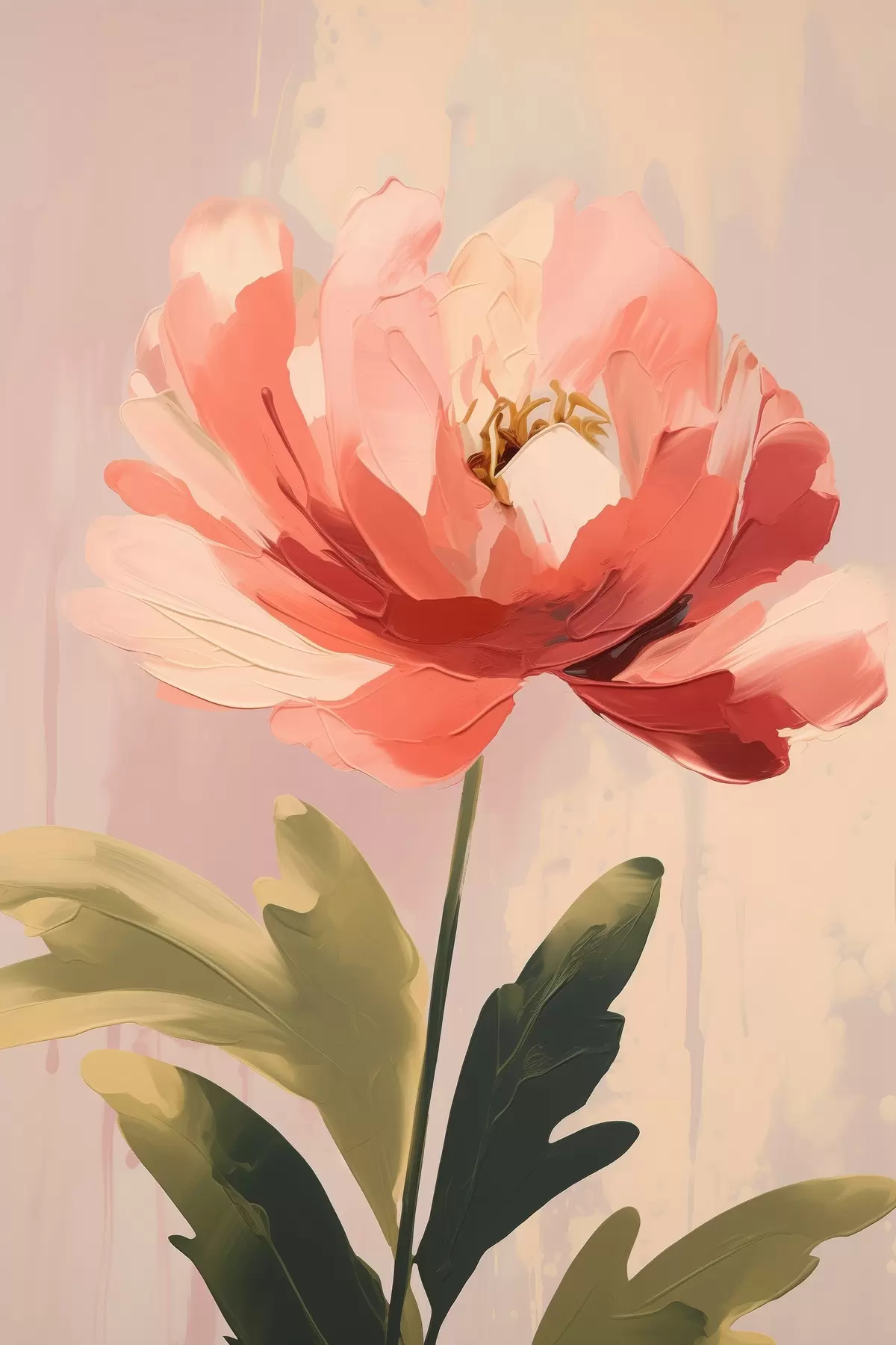 Paveikslas Koralinė bijūnė ant pastelinio fono, moderniosios meno iliustracijos stiliumi Nr s46949