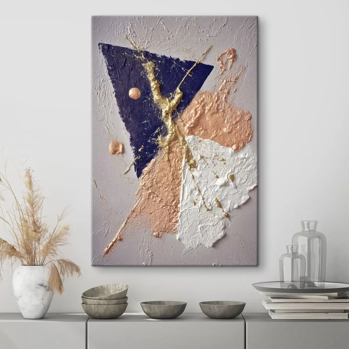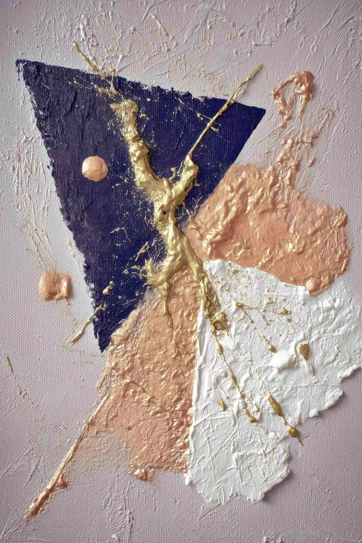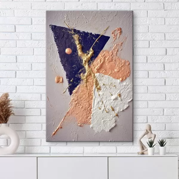 Paveikslas Abstraktaus kompozicijos su tamsiai mėlynu trikampiu ir reljefiniais potėpiais aliejaus tapybos stiliumi Nr s46953