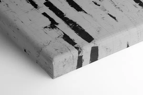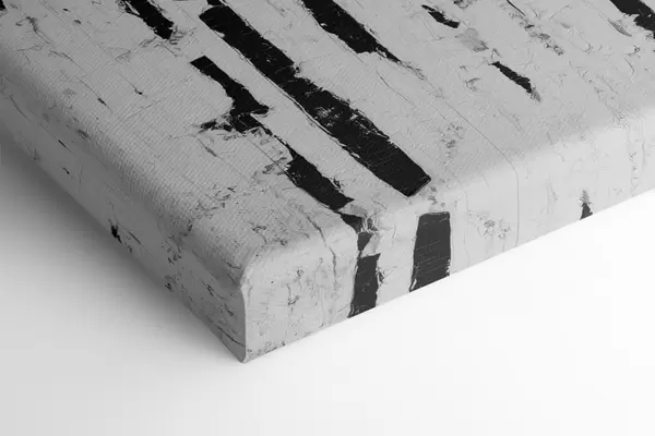 Paveikslas Abstrakčioji kompozicija su juodais vertikaliais potėpiais ant balto fono, tapyta aliejiniais dažais. Nr s46956