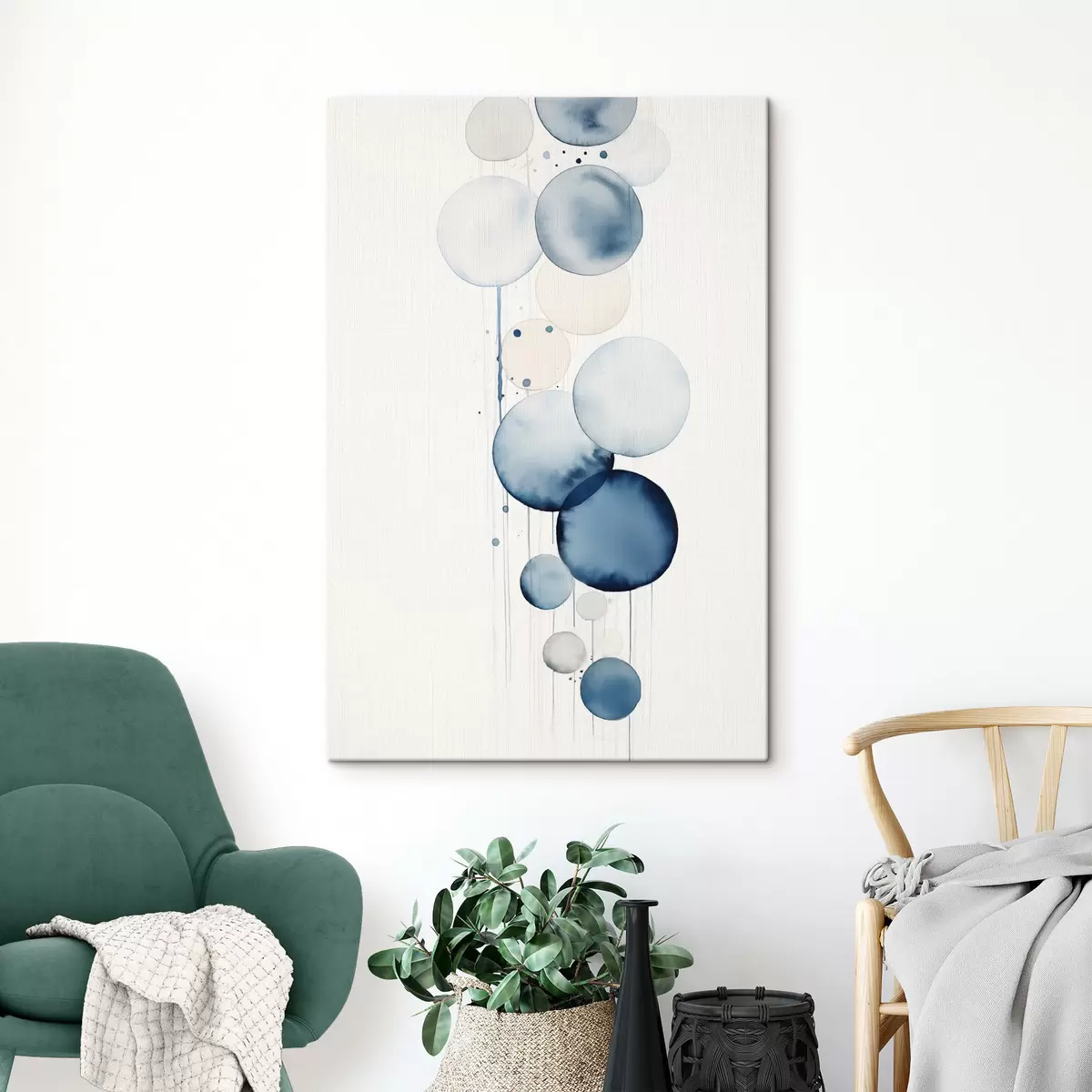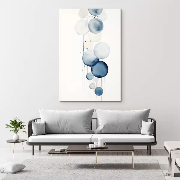 Paveikslas Abstrakčios tekstūros mėlynos ir baltos akvarelės apskritimai įvairių dydžių, ant balto fono Nr s47020