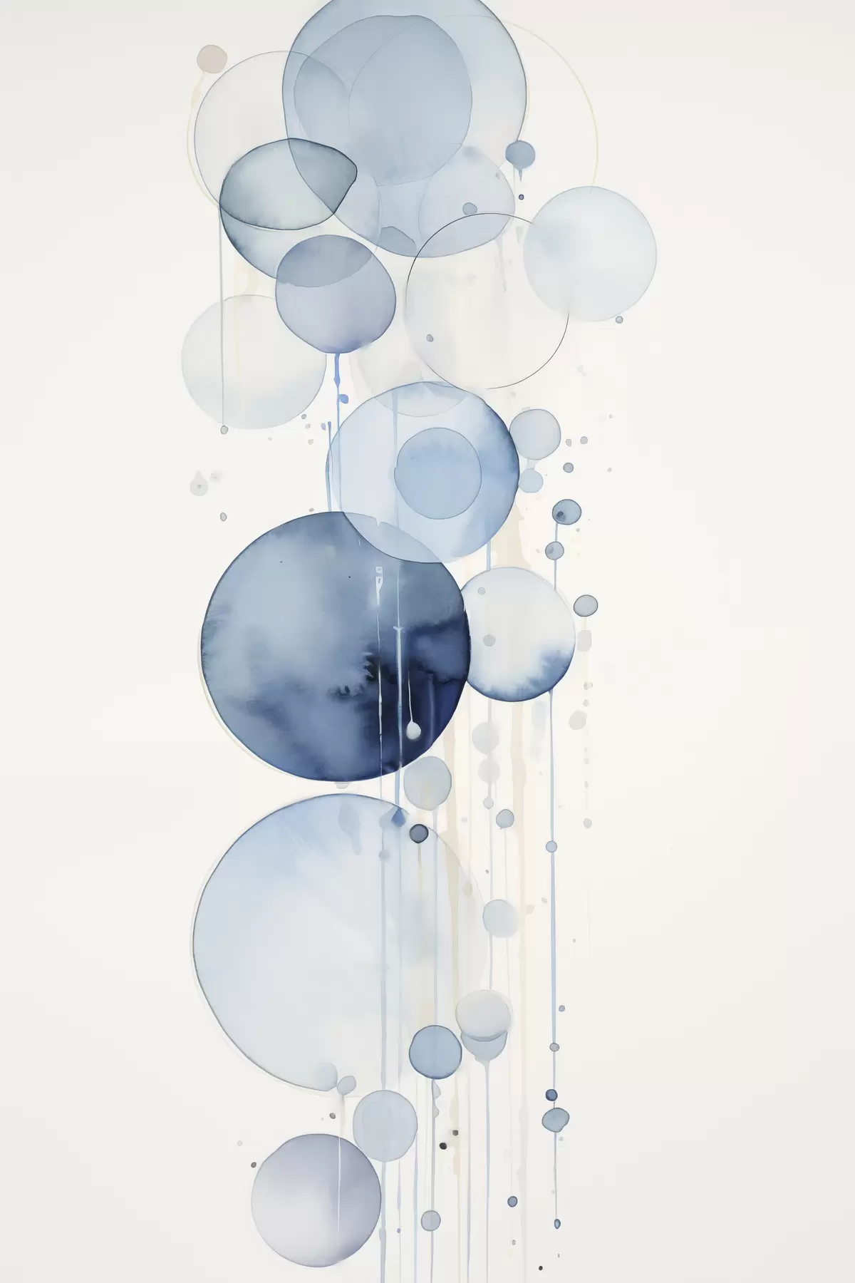 Paveikslas Abstrakčios tekstūros mėlynos ir baltos akvarelės apskritimai įvairių dydžių, ant balto fono Nr s47021
