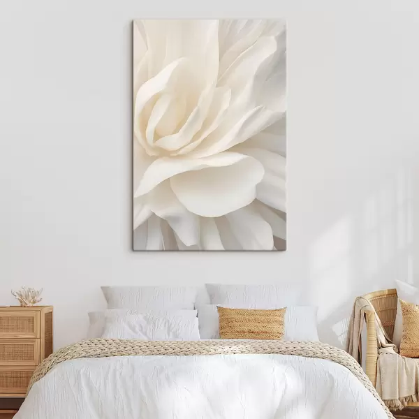 Paveikslas Abstraktaus balto gėlės su subtiliais, sluoksniais susidėvėjusiais žiedlapiais, minimalistinis menas Nr s47024