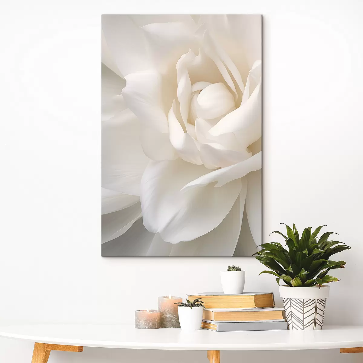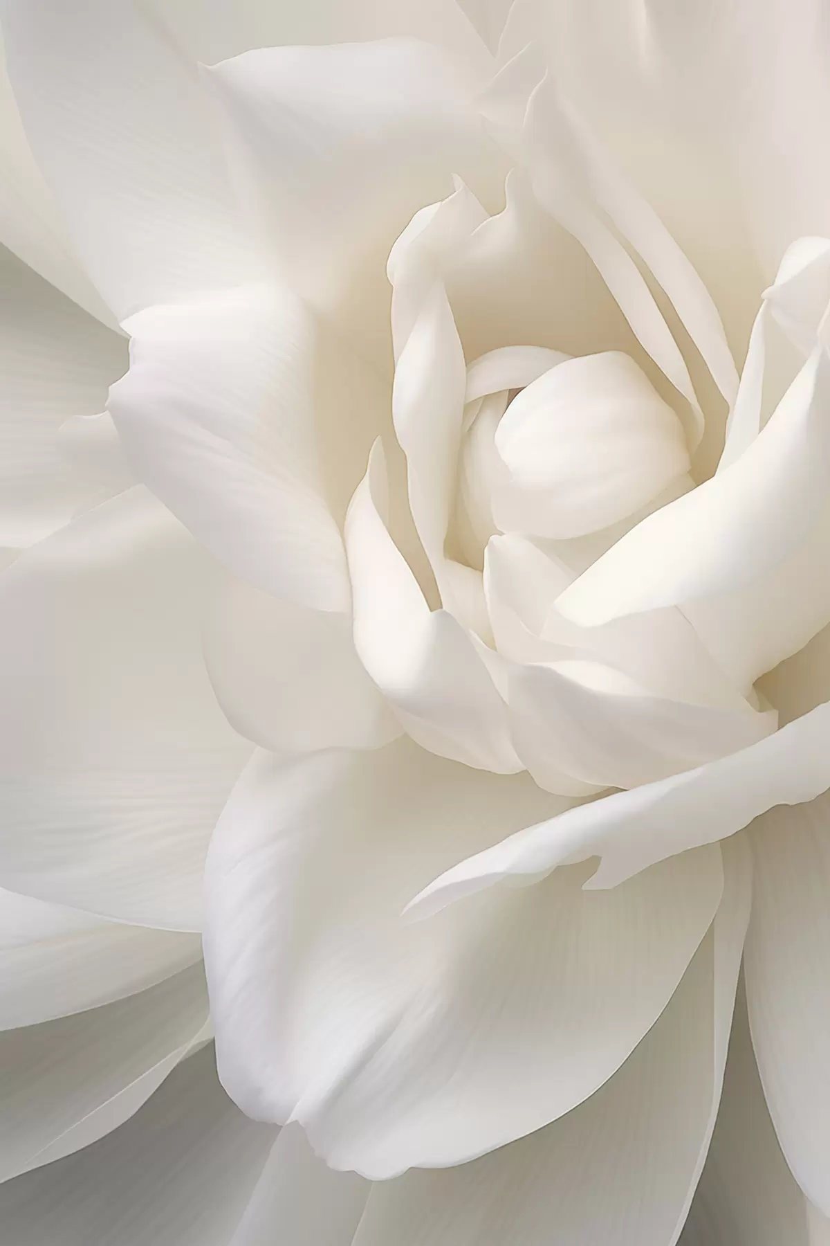 Paveikslas Abstraktaus balto gėlės su subtiliais, sluoksniais susidėvėjusiais žiedlapiais, minimalistinis menas Nr s47025