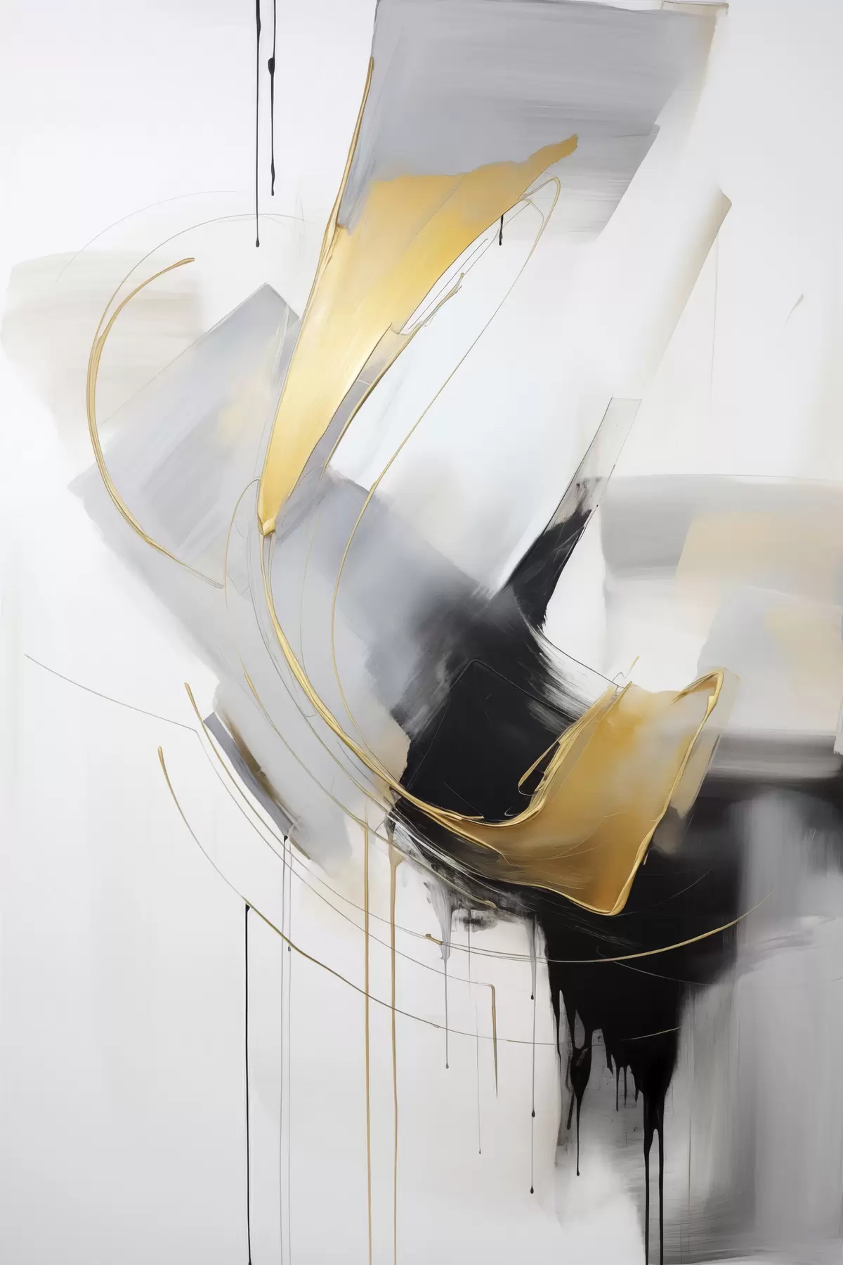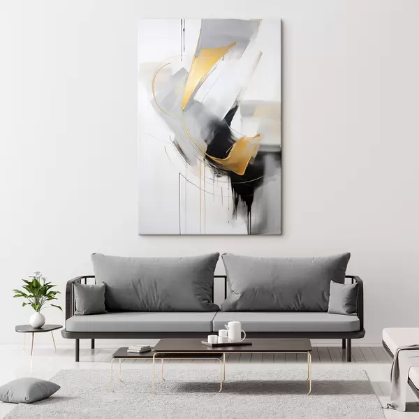 Paveikslas Abstraktaus tapybos kūrinys su geltonos, juodos ir baltos spalvų potėpiais, dinamiškomis linijomis. Nr s47034