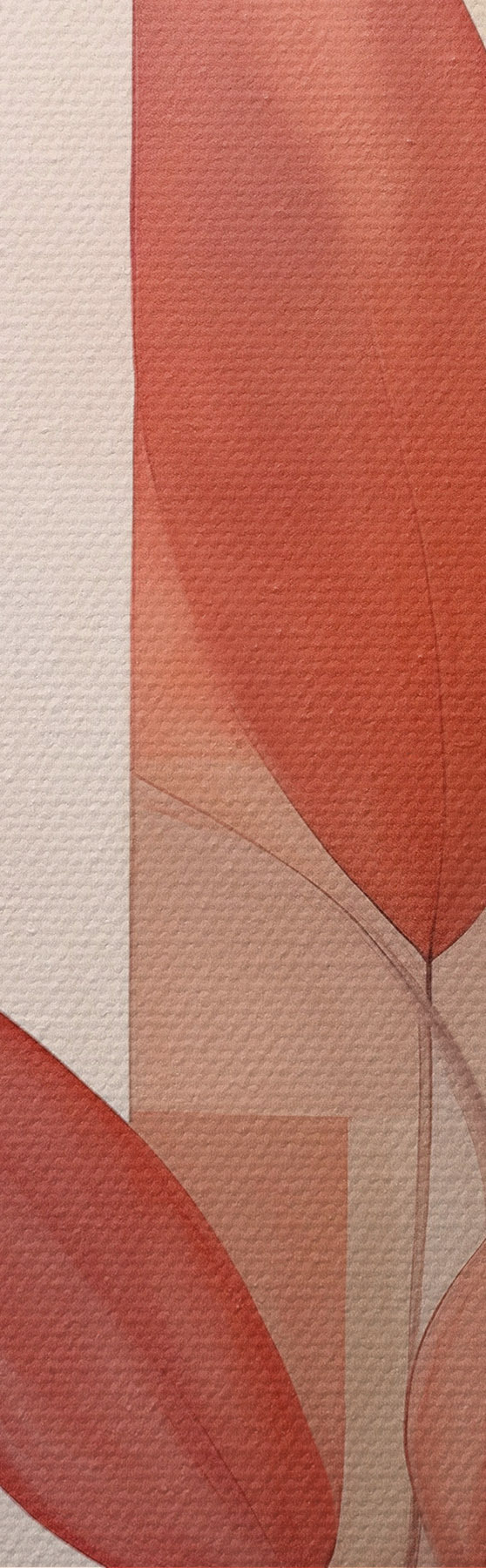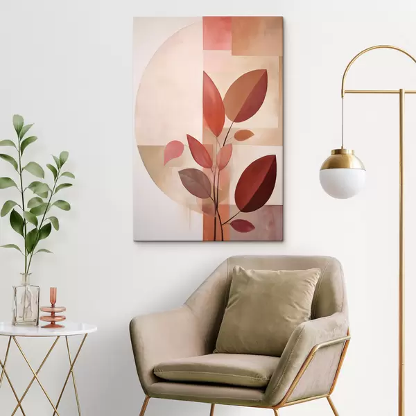 Paveikslas Abstraktaus augalo su raudonais lapais piešinys geometrinių formų ir švelnių, prislopintų spalvų fone Nr s47041