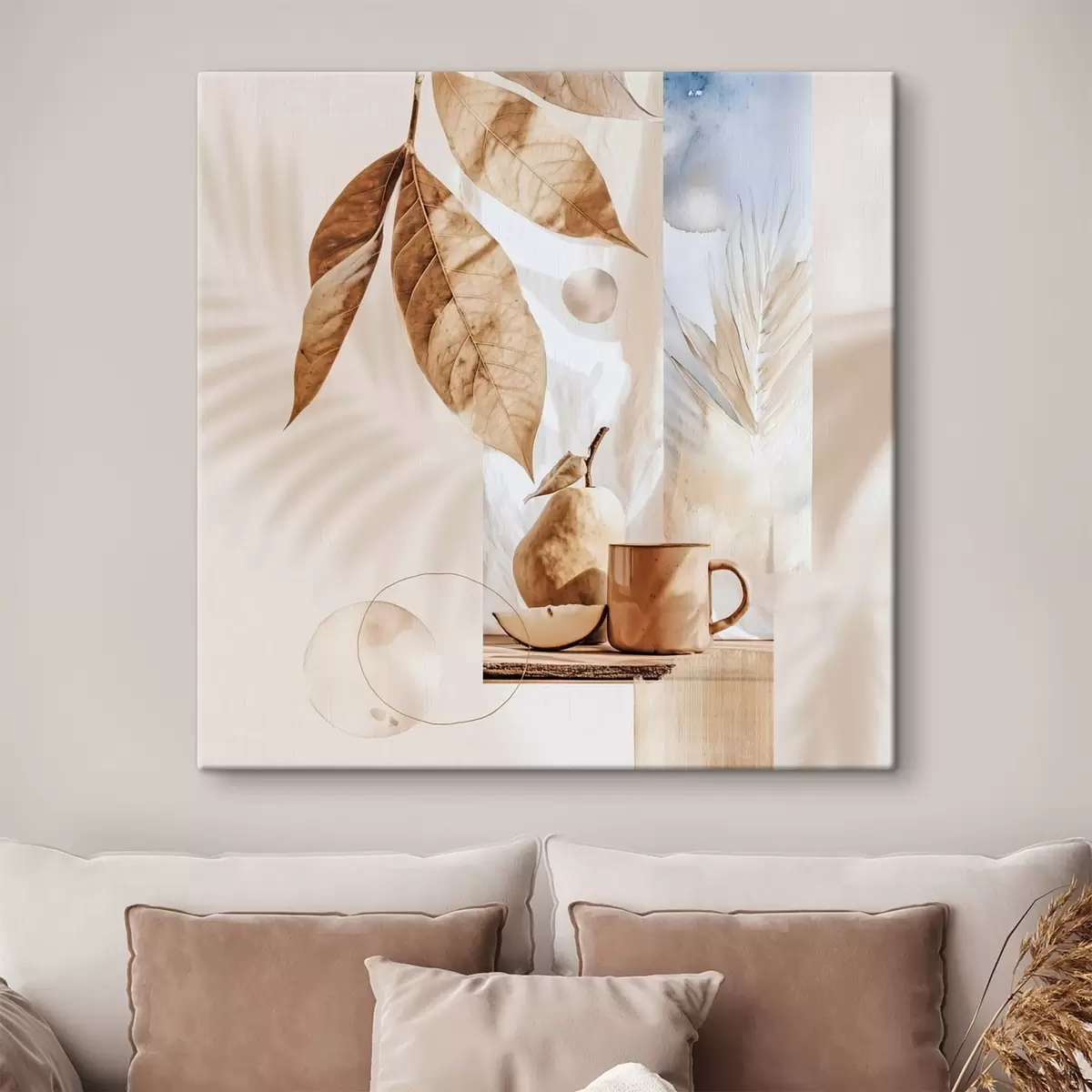 Paveikslas Abstraktus su lapais, kriauše ir puodeliu Nr s47047