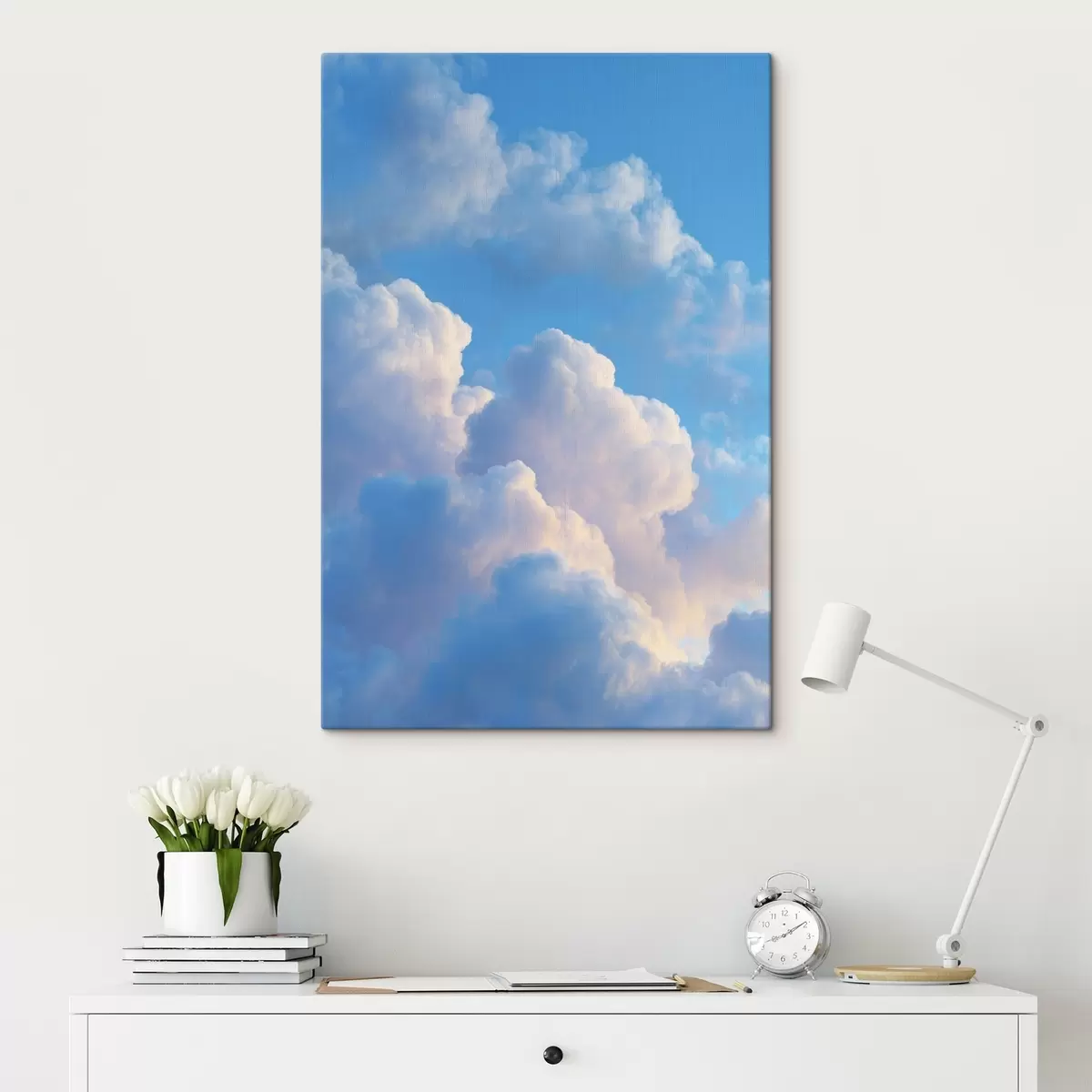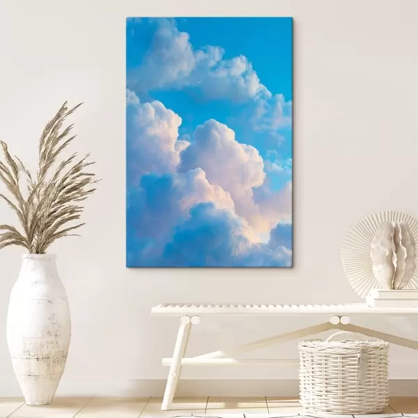 Paveikslas Tūriniai debesys švelnios mėlynos ir rožinės spalvų paletės fotorealistinio skaitmeninio grafiko stiliaus Nr s47088