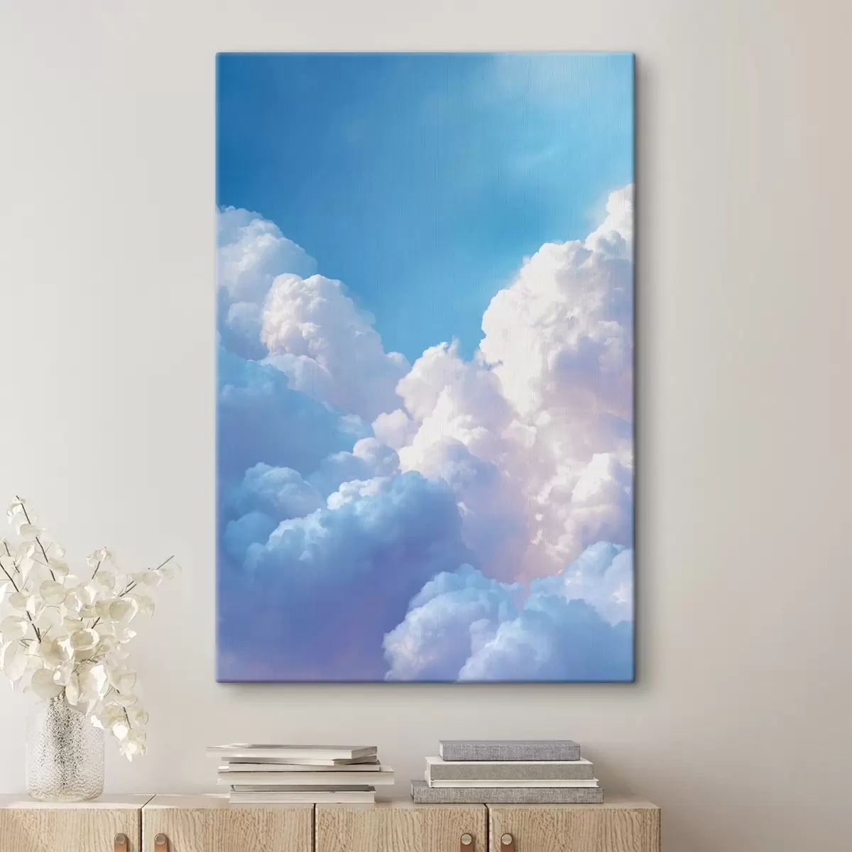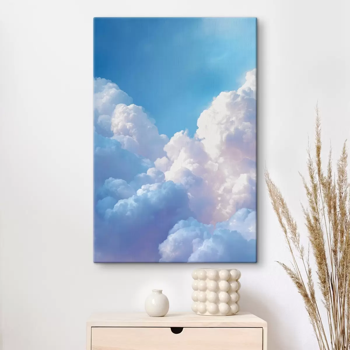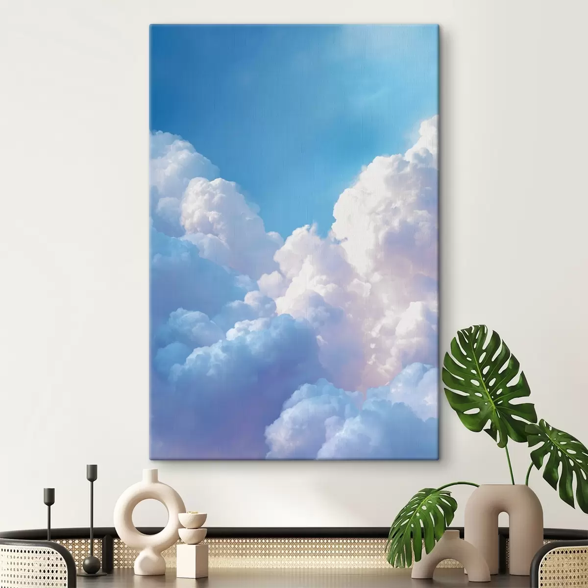 Paveikslas Vaizdingas dangaus peizažas su dideliais baltais debesimis skaitmeninės grafikos stiliumi Nr s47089