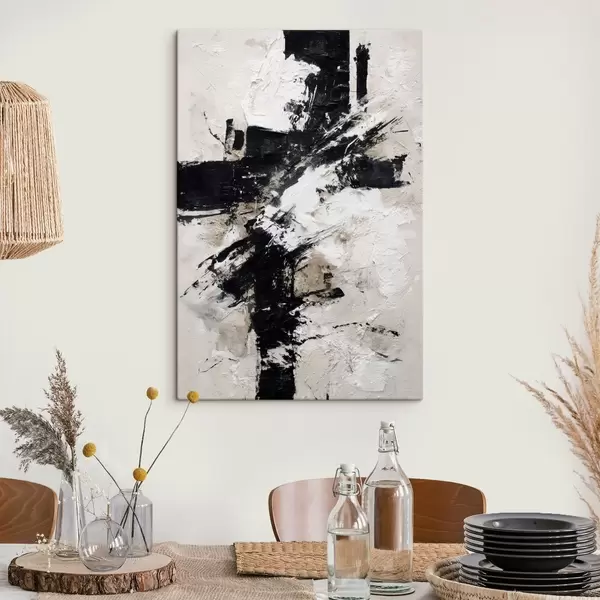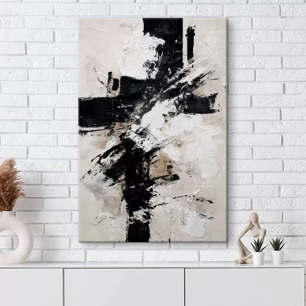 Paveikslas Šiuolaikinis interjero abstraktas su chaotiškomis linijomis ir tūriniais potėpiais drobėje tapybos stiliumi Nr s47090