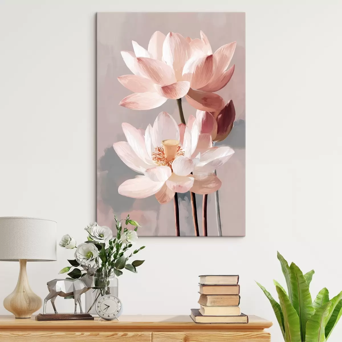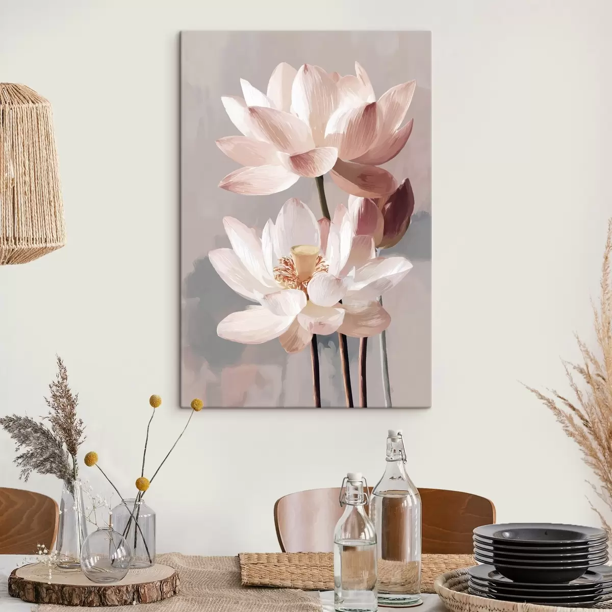 Paveikslas Subtilūs rožiniai lotosai ant pastelinio fono, nutapyti šiuolaikiniu tapybos stiliumi Nr s47092