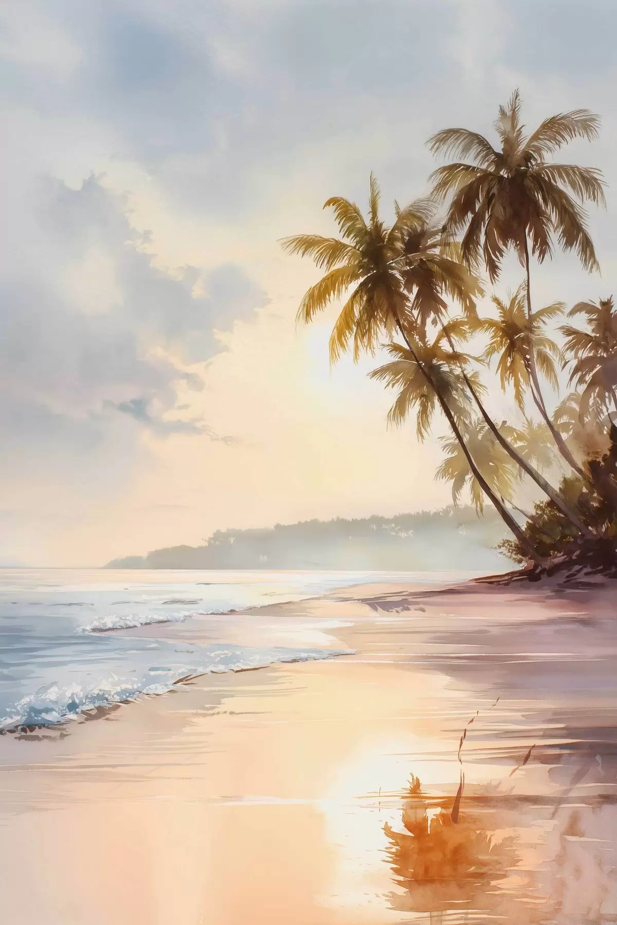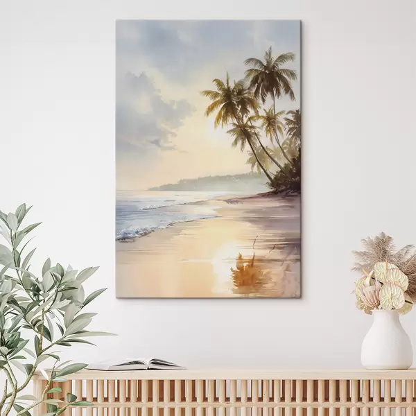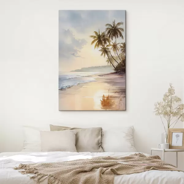 Paveikslas akvarelės stiliaus saulėlydžio paplūdimys saloje Nr s47135