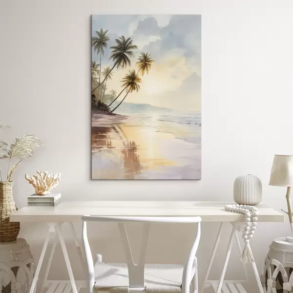 Paveikslas akvarelės stiliaus saulėlydžio paplūdimys saloje Nr s47136