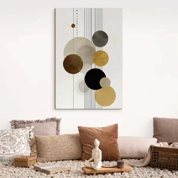 Paveikslas abstrakcija su apskritimais ir linijomis šiltomis spalvomis Nr s47237