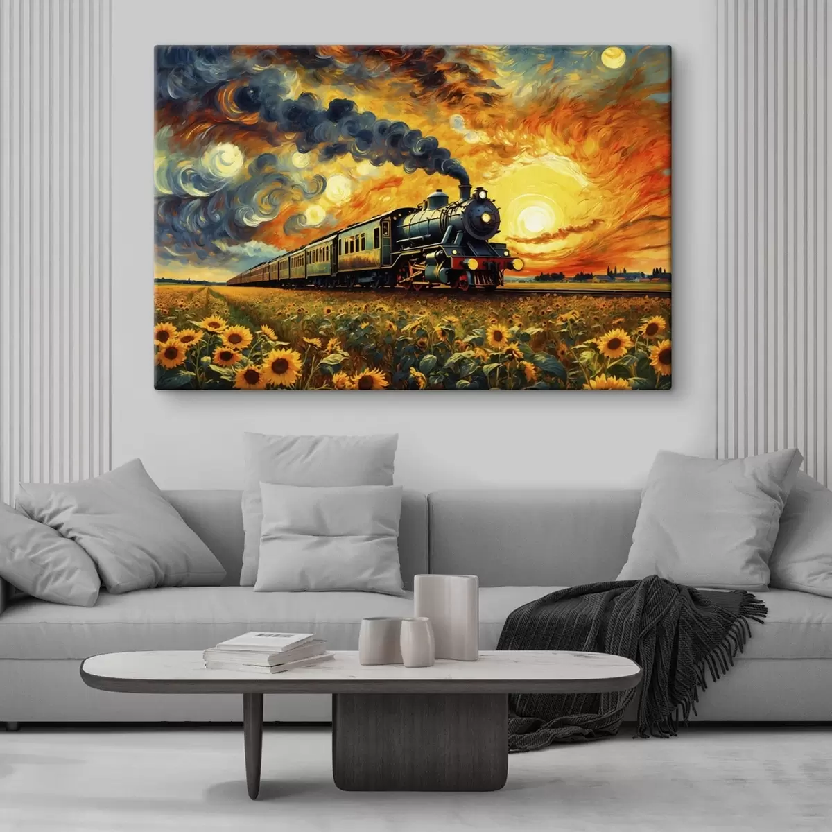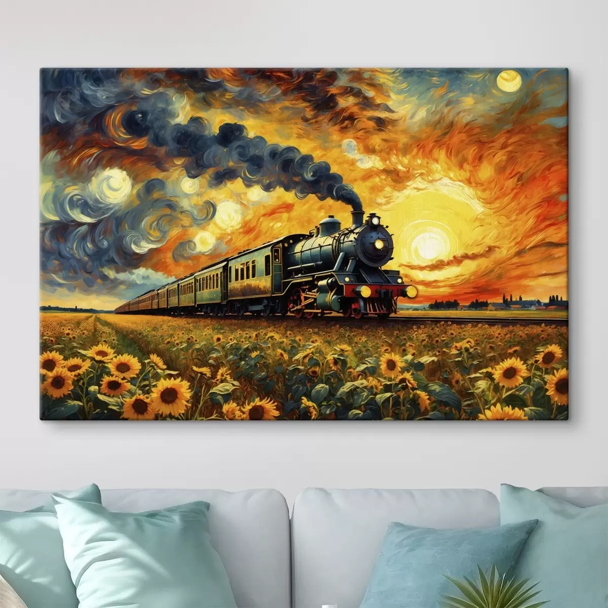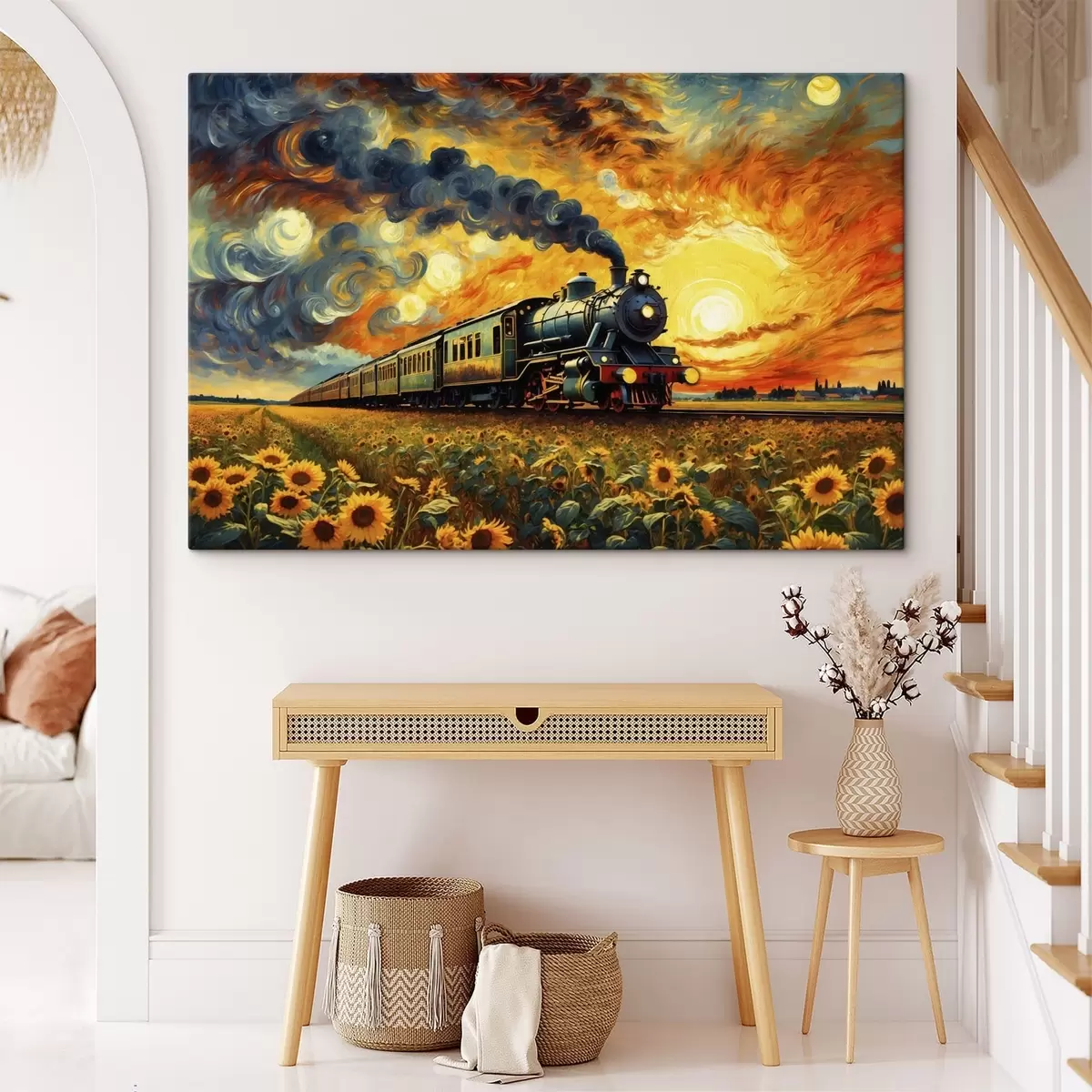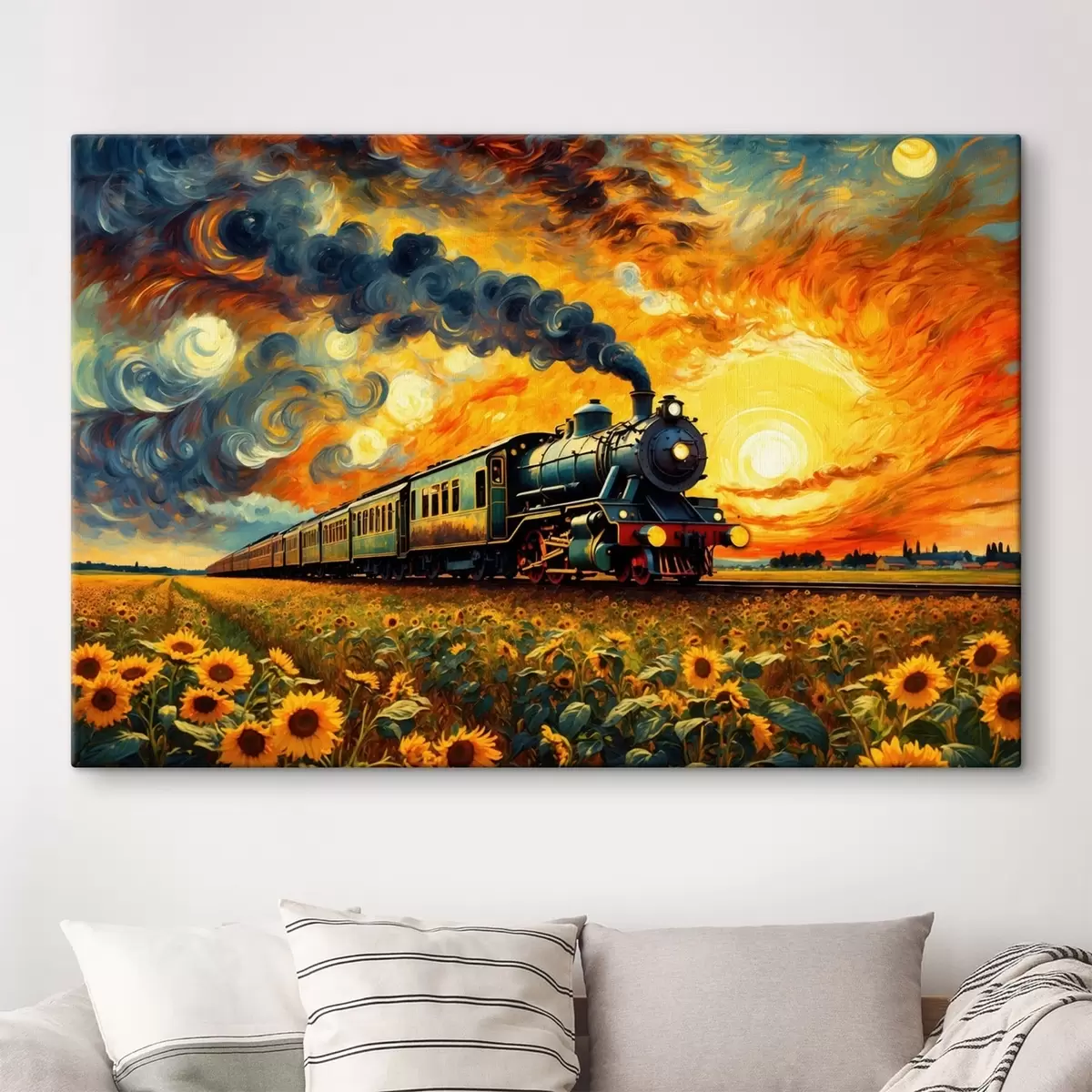 Paveikslas Garo traukinys lauke su dramatišku dangumi Nr s47257